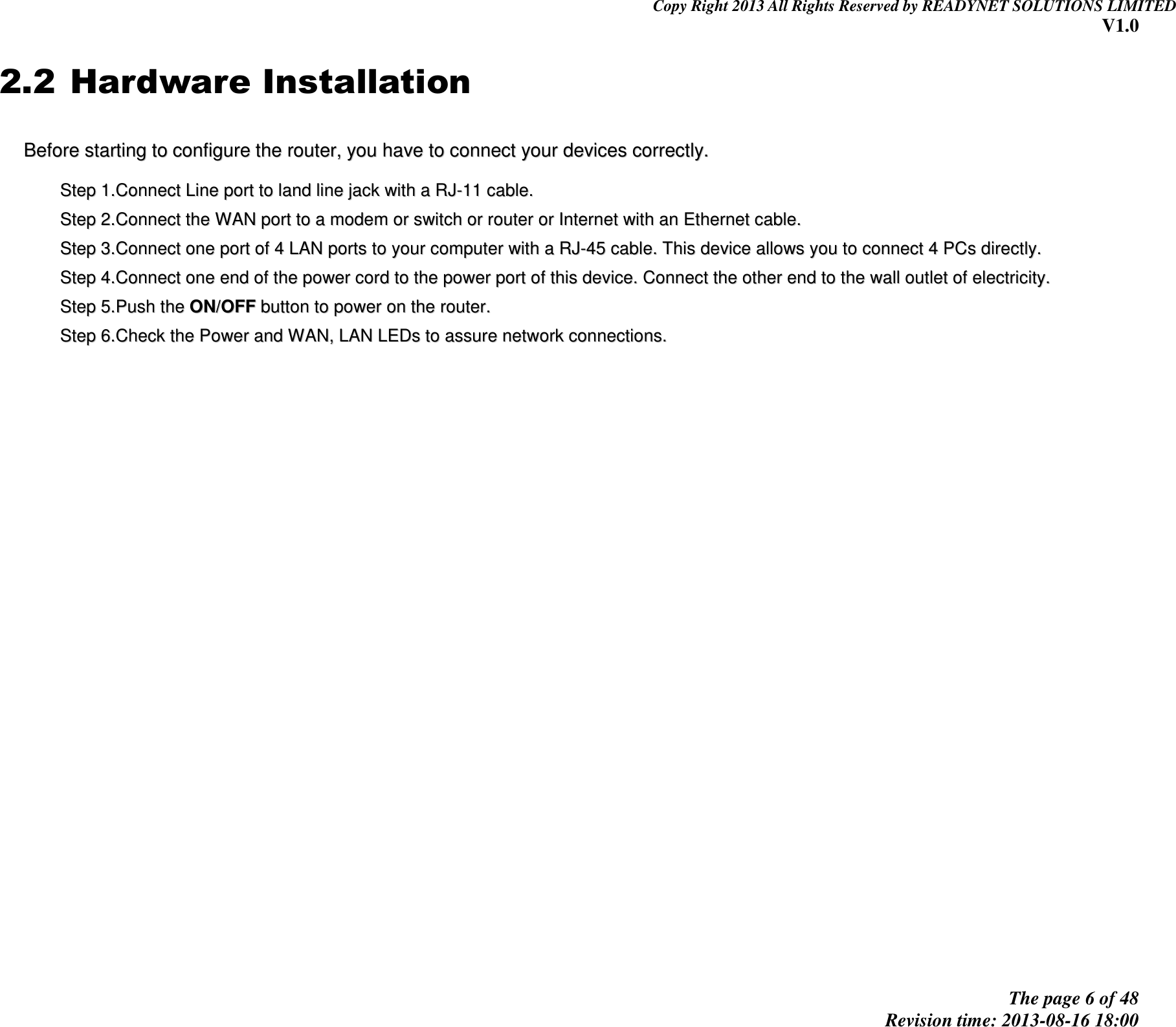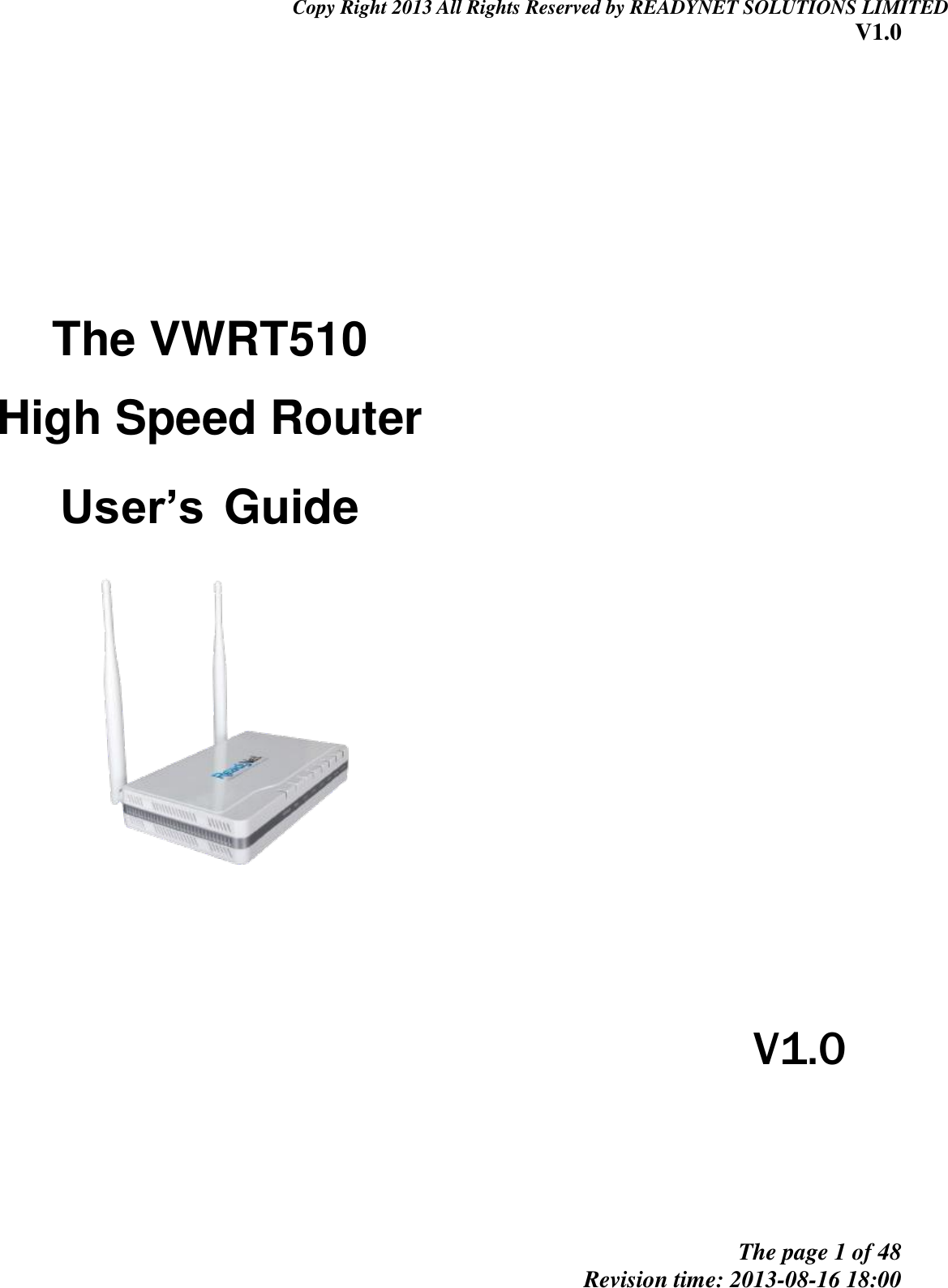 Phonex Broand ReadyNet VWRT510 Wireless Router User Manual The VWRT510