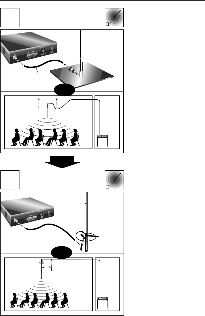 • Confirm that the antenna is connected properly to the transmitter. Relocate the antenna away from