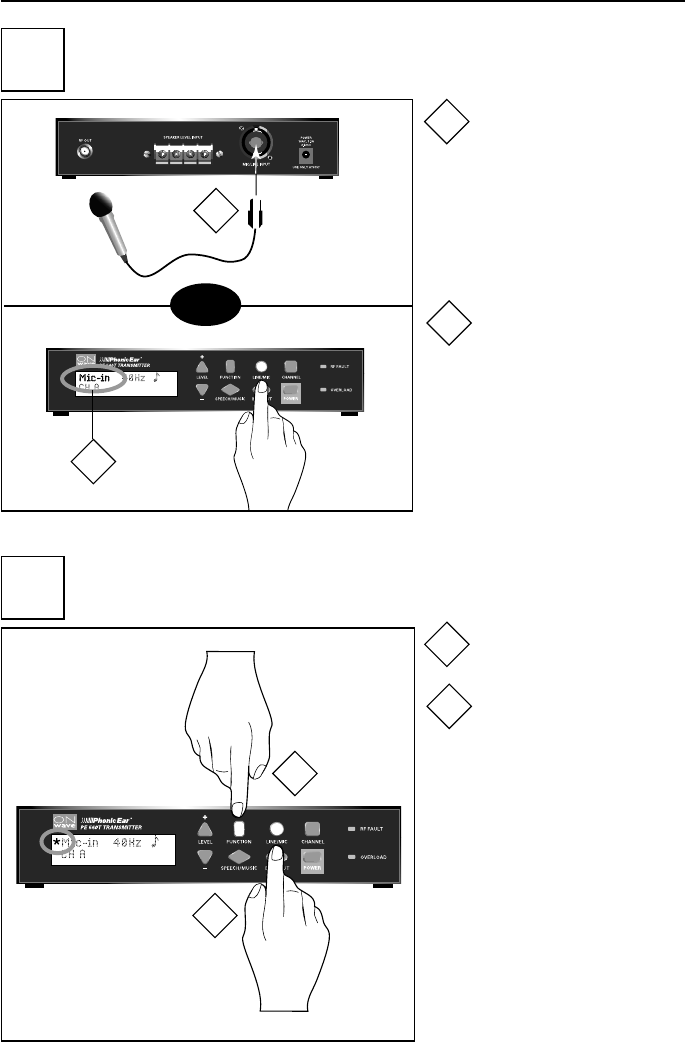 • Check the transmitter line level indicators located in the display window. 2-3 bars should peak