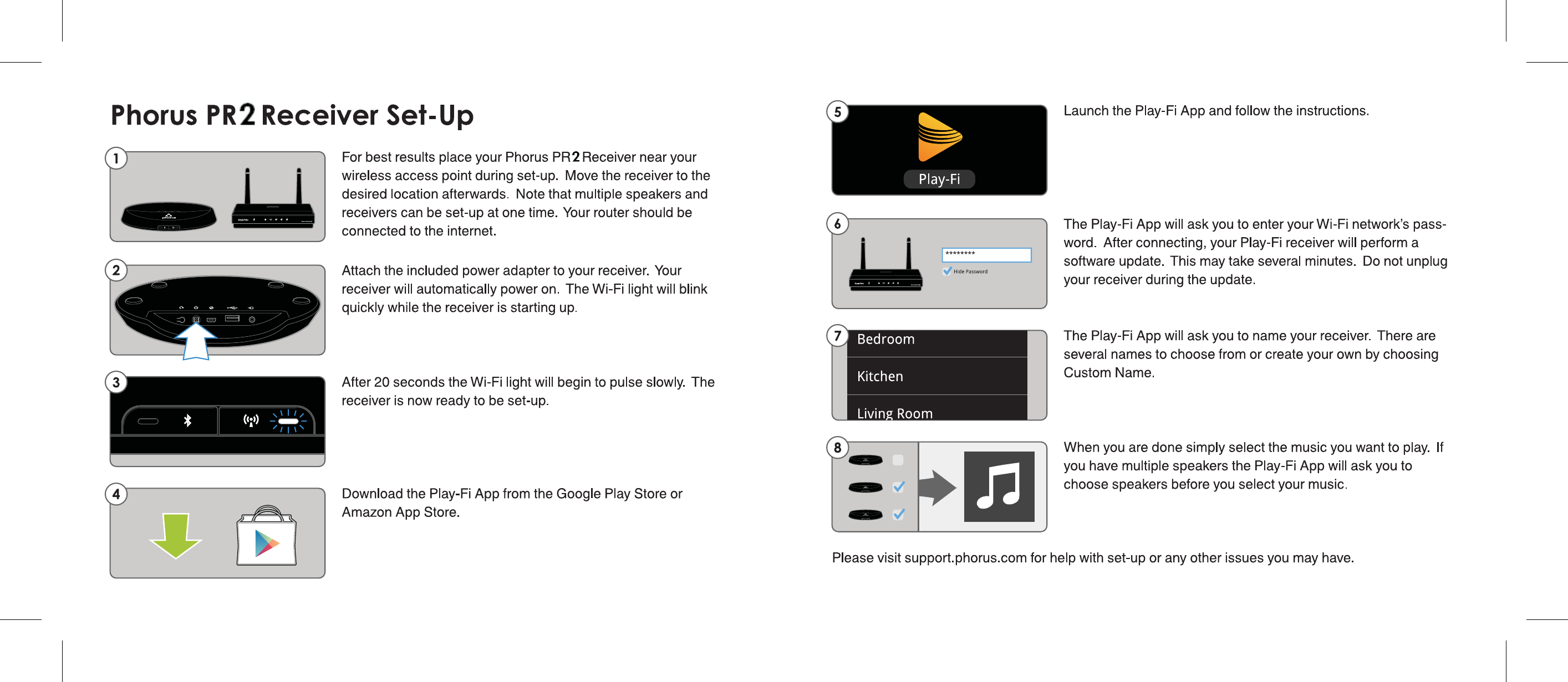 Phorus PR2RECEIVER Play-Fi Receiver User Manual PHORUS DKR ID 0008 Deckard Quick Start Guide eps