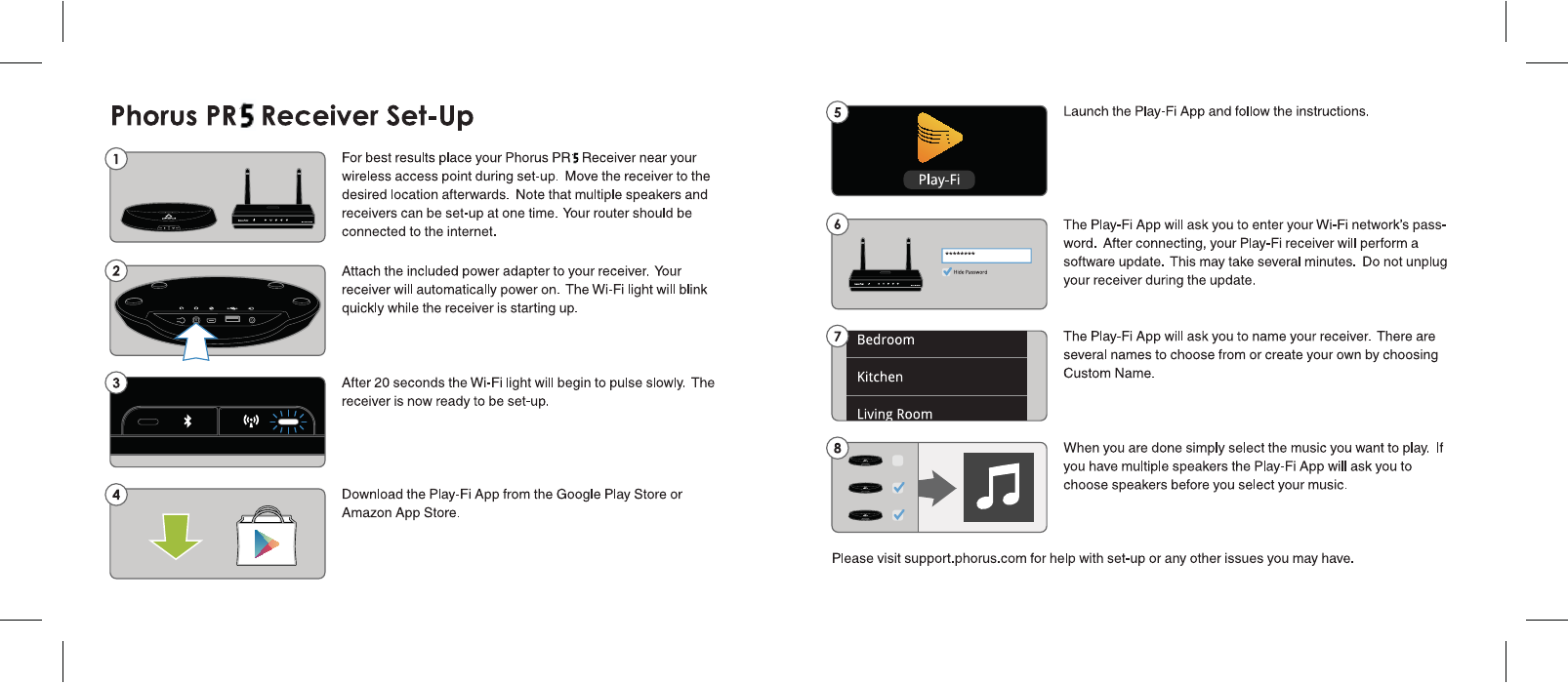 Phorus PR5RECEIVER Play-Fi Receiver User Manual PHORUS DKR ID 0008 Deckard Quick Start Guide eps