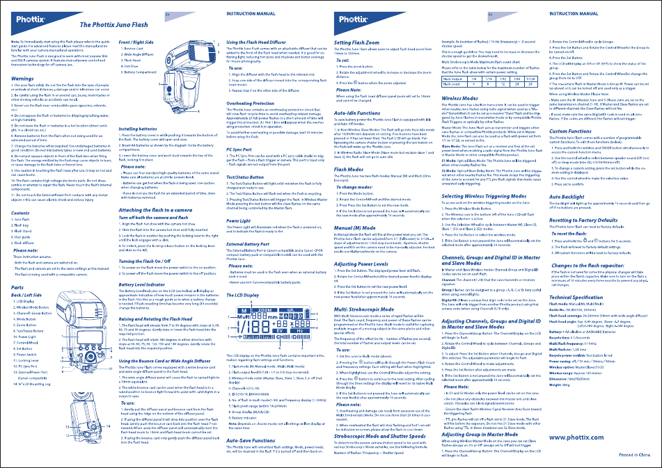 Phottix JUNO Juno Flash User Manual Phottix Juno TTL CU