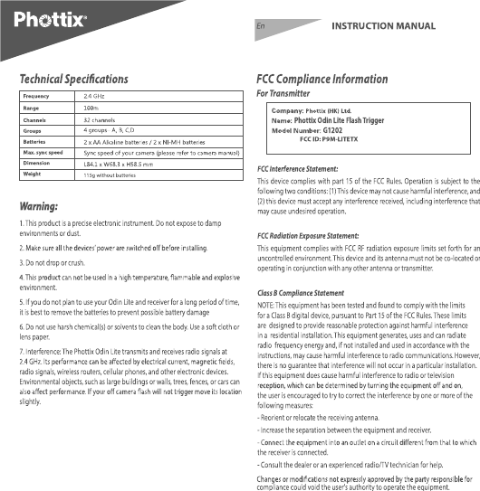 Phottix LITETX Phottix Odin Lite Flash Trigger User Manual