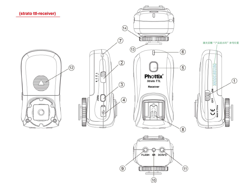 2. To Test: Press the transmitter Test Button. Flashes connected to Phottix Strato TTL