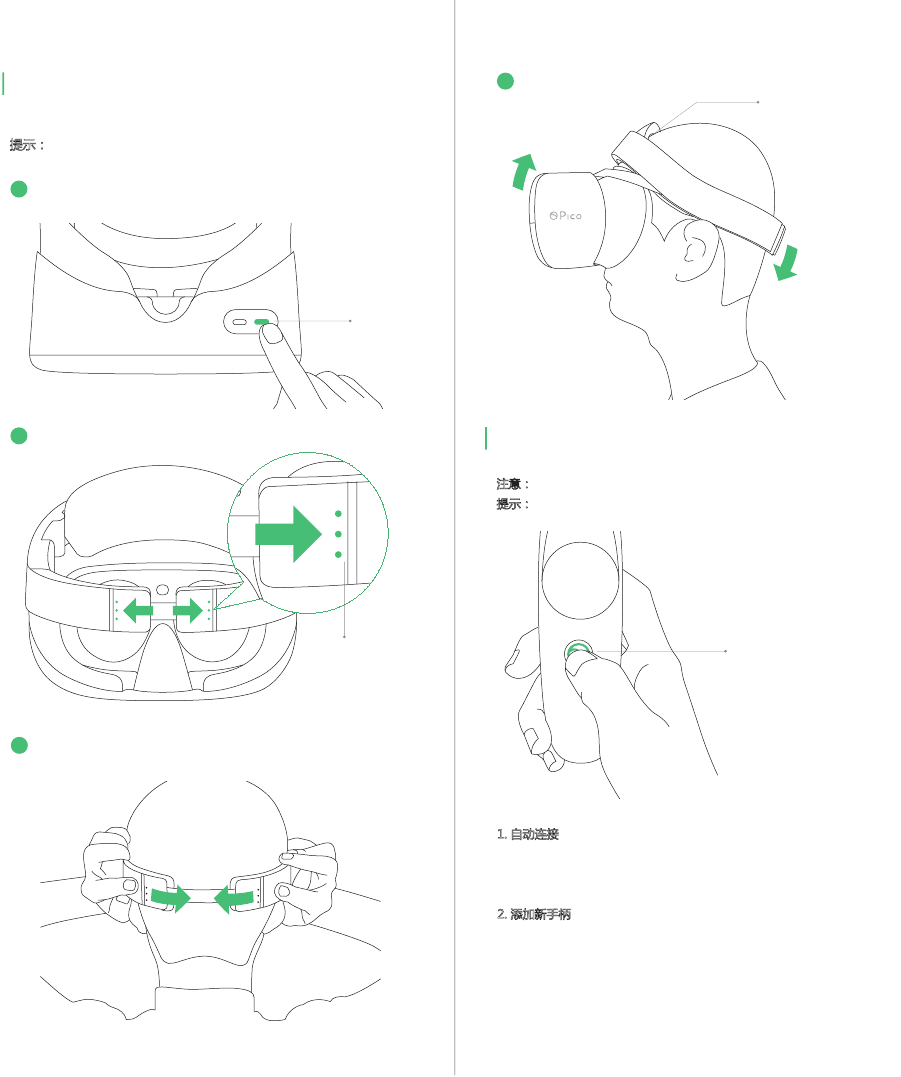 提示:佩戴时请勿摘下眼镜,本设备不具备焦距调节功能