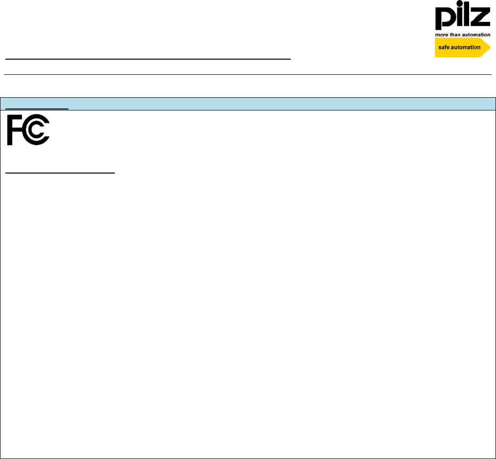Changes or modifications made to this product not expressly approved by Pilz may void the FCC