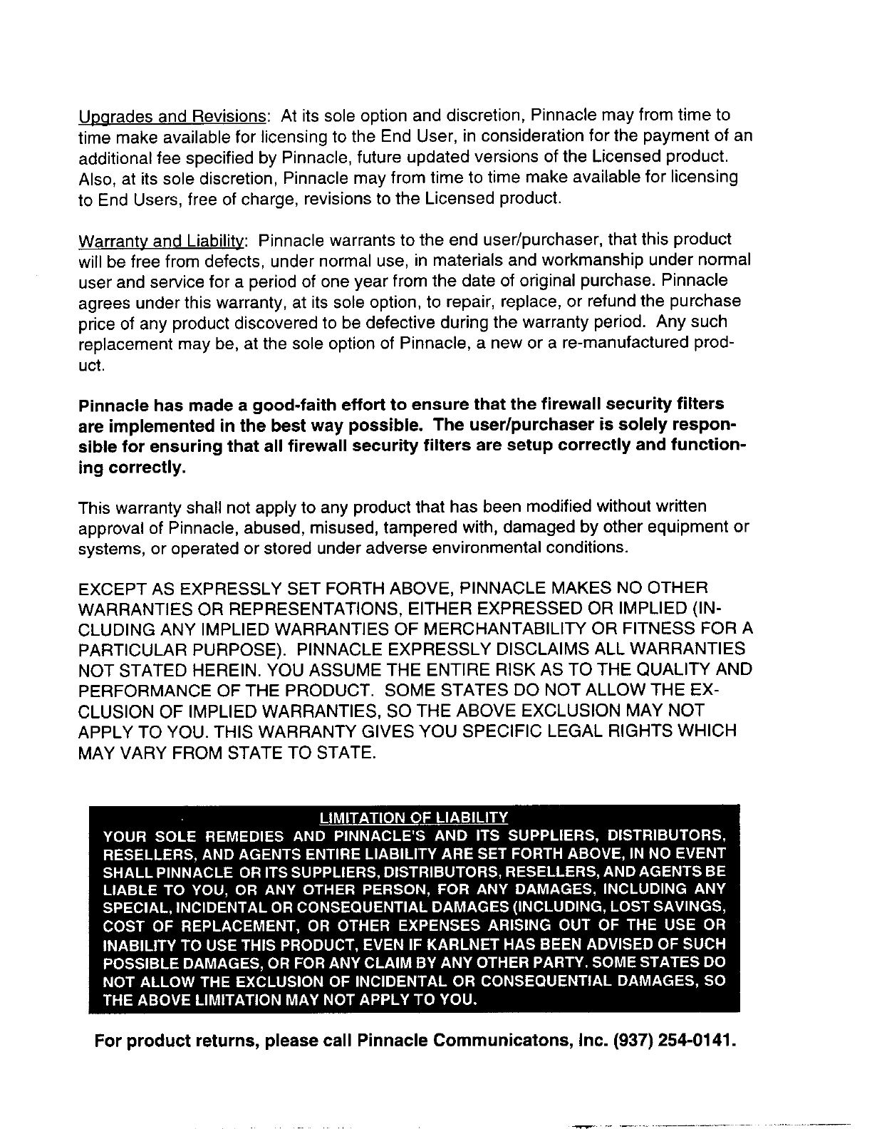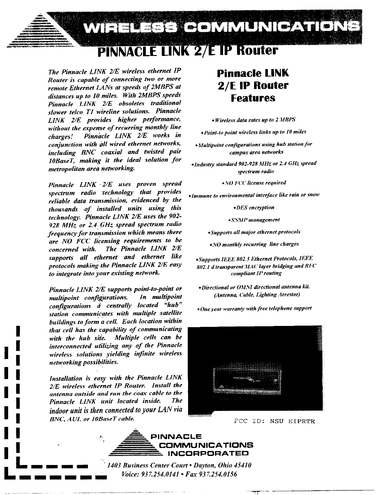 Pinnacle Communications EIPRTR Wireless Bridge/Router User Manual 51328