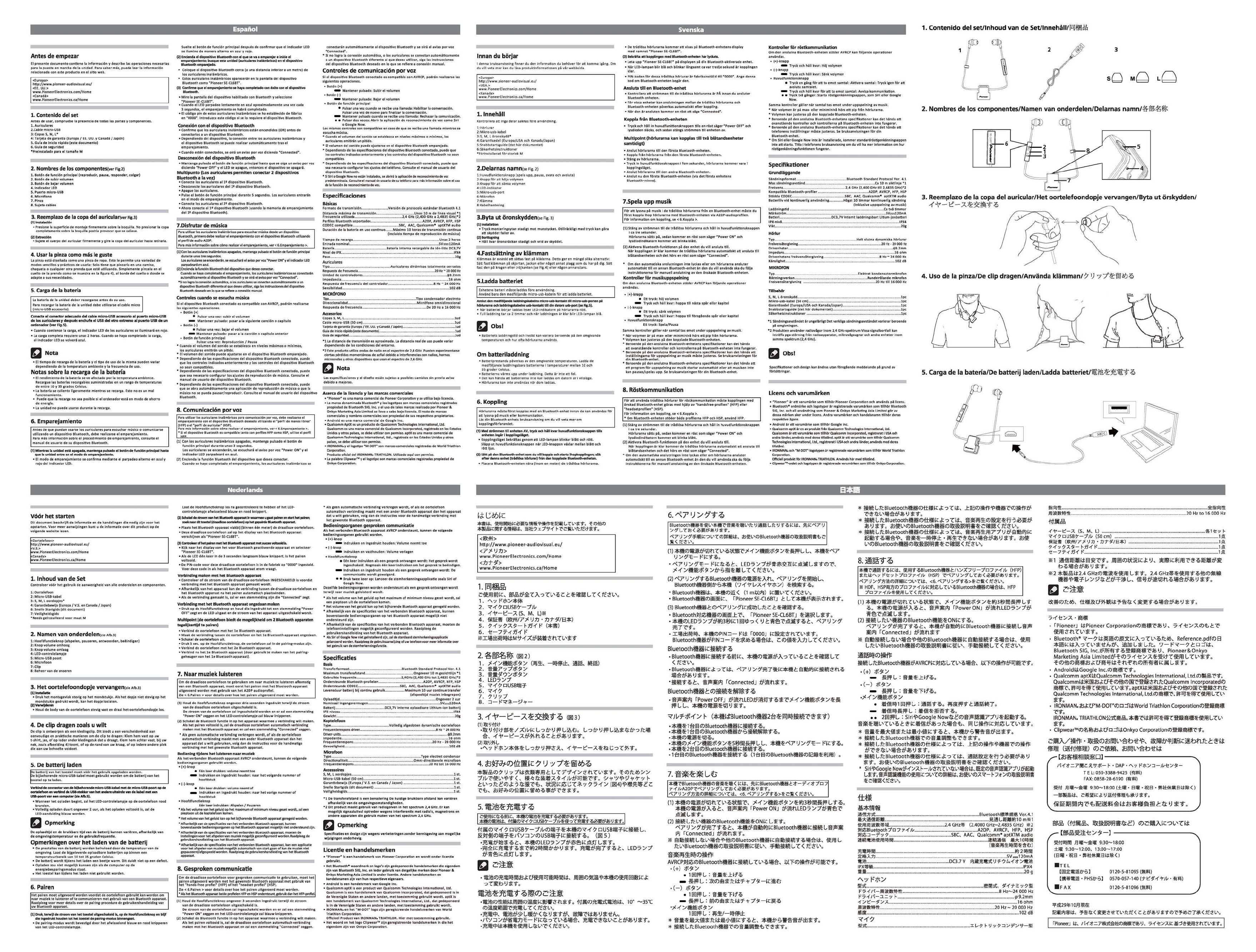 Pioneer and Onkyo Asia SE1250 Pioneer ClipWear Plus Wireless Earphones User Manual 2