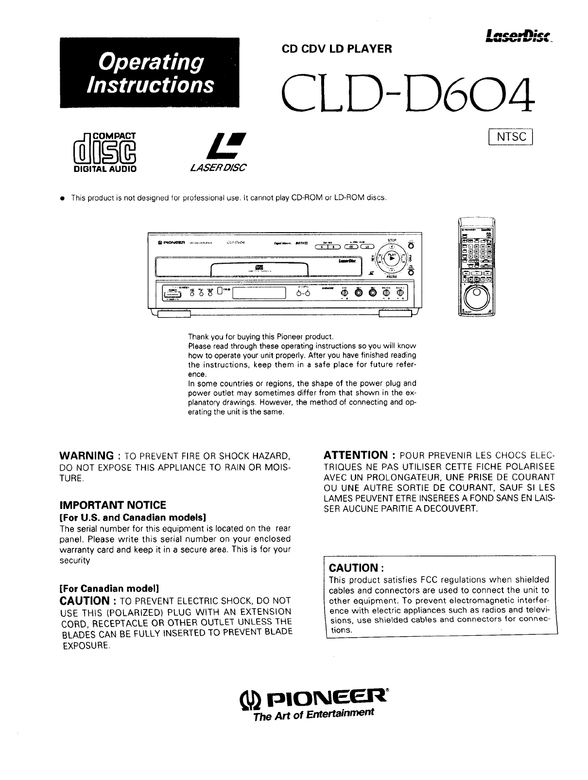 User Manual: Pioneer CLD-D604 CLD-D604 PIONEER CD CDV LD PLAYER - Manuals and Guides View the owners manual for your PIONEER CD CDV LD PLAYER #CLDD604. Home:Electronics Parts:Pioneer Parts:Pioneer CD CDV LD PLAYER Manual