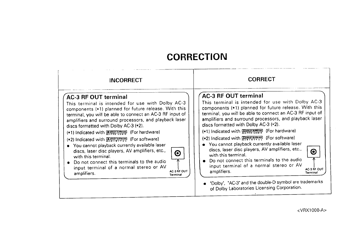 This terminal is intended for use with Dolby AC-3