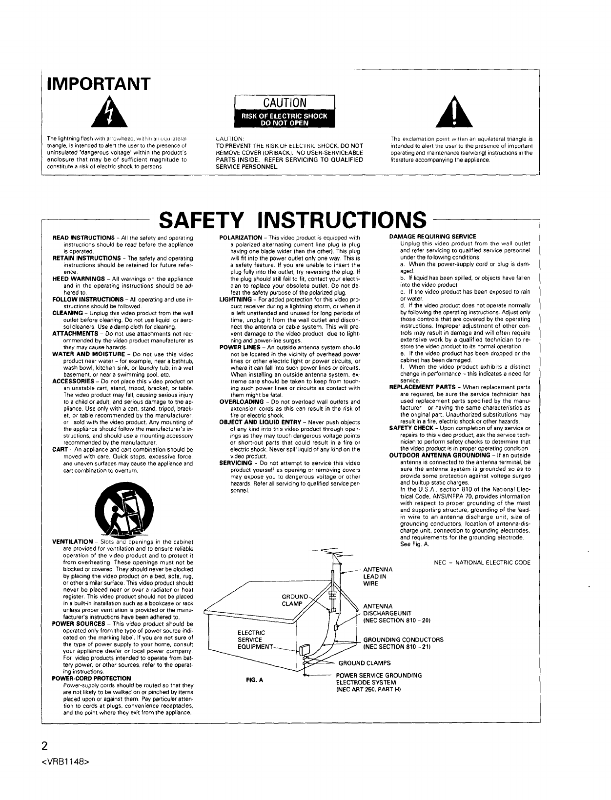 CAUTION : TO PREVENT ELECTRIC SHOCK, DO NOT