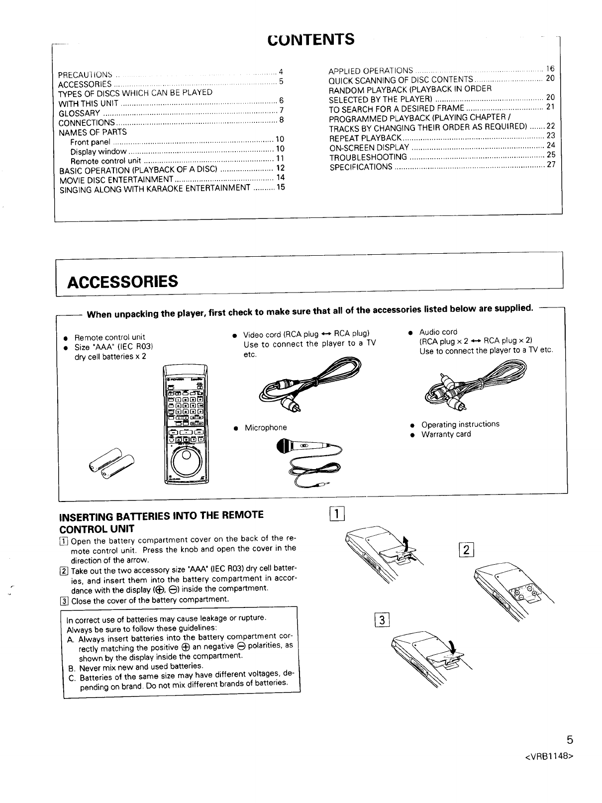 Size "AAA" (IEC R03) dry cell batteries ........................................... 2