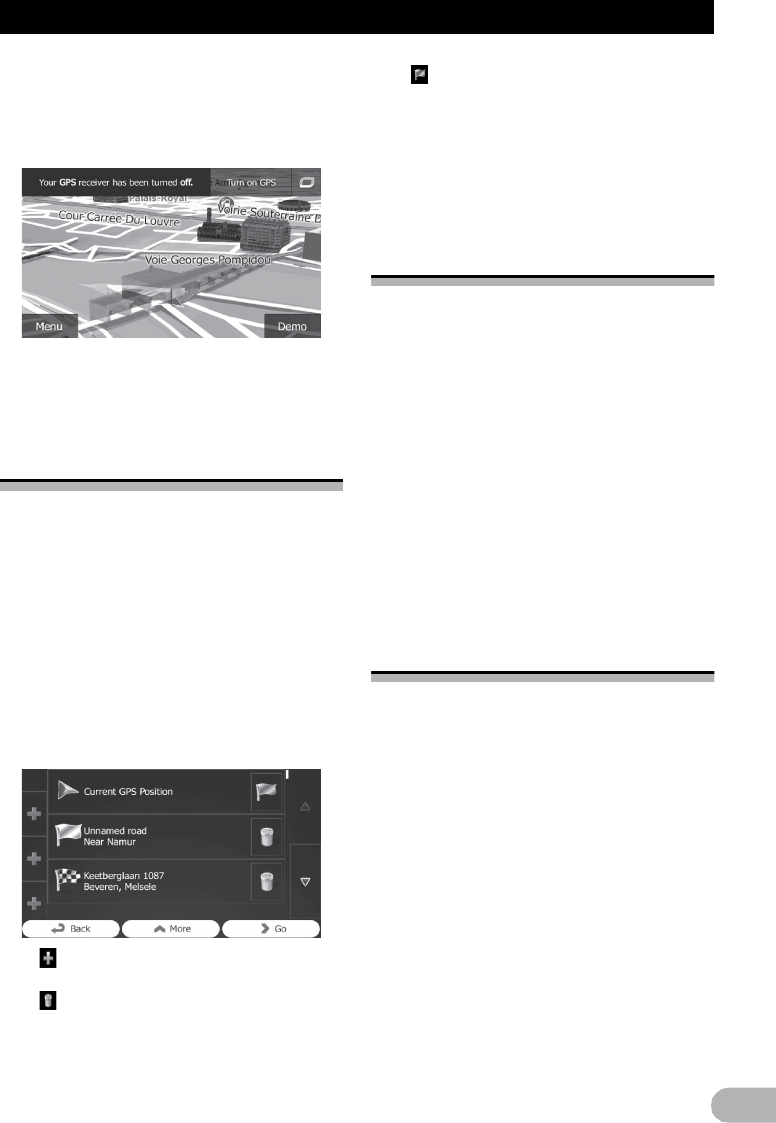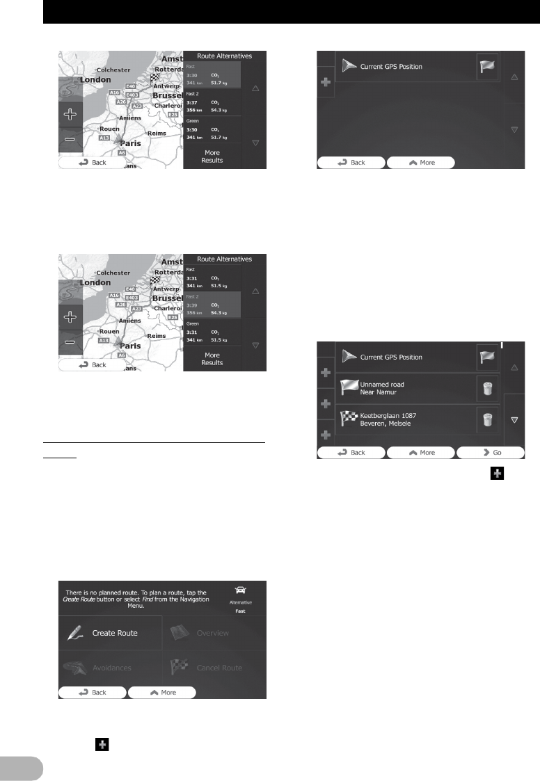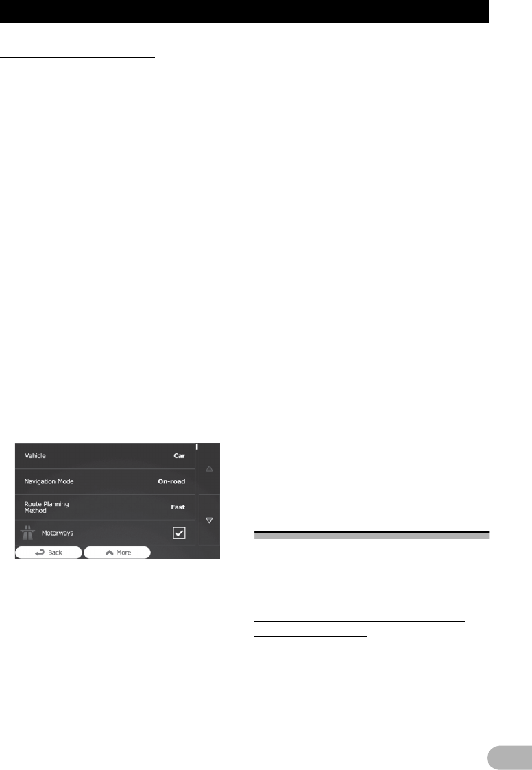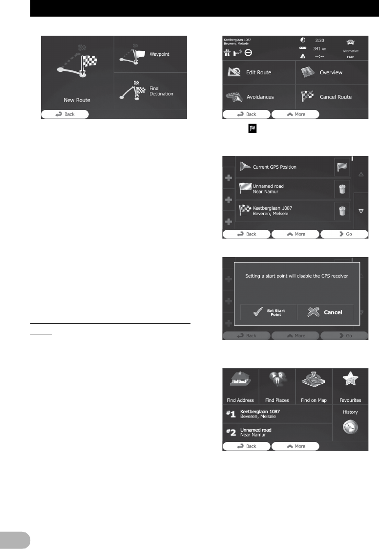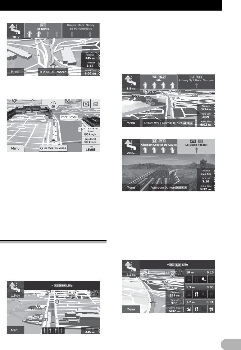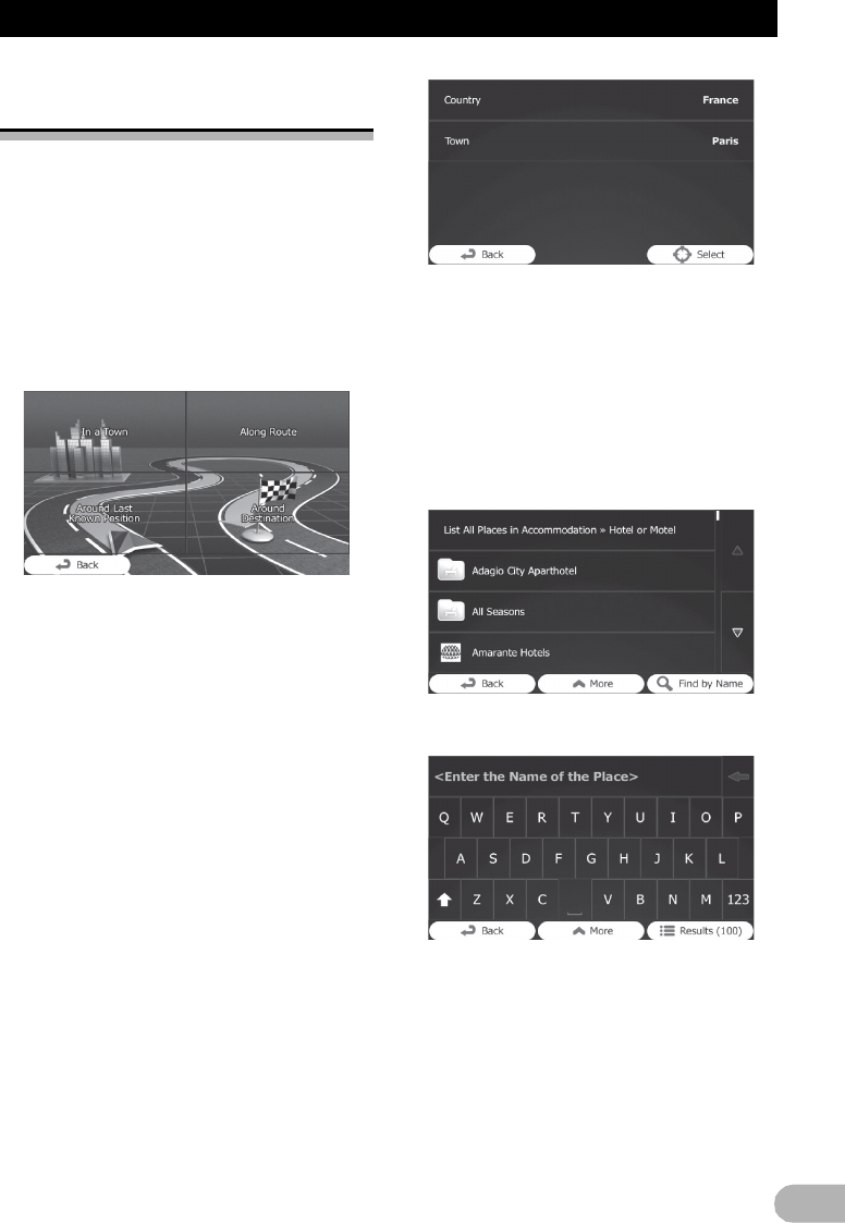 - Operating list screens of the navigation function (e.g. route settings screen)