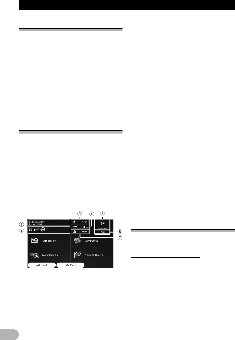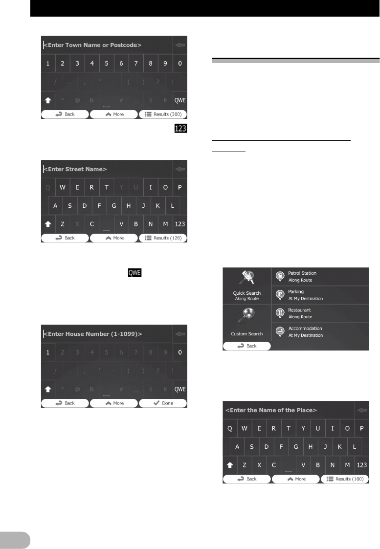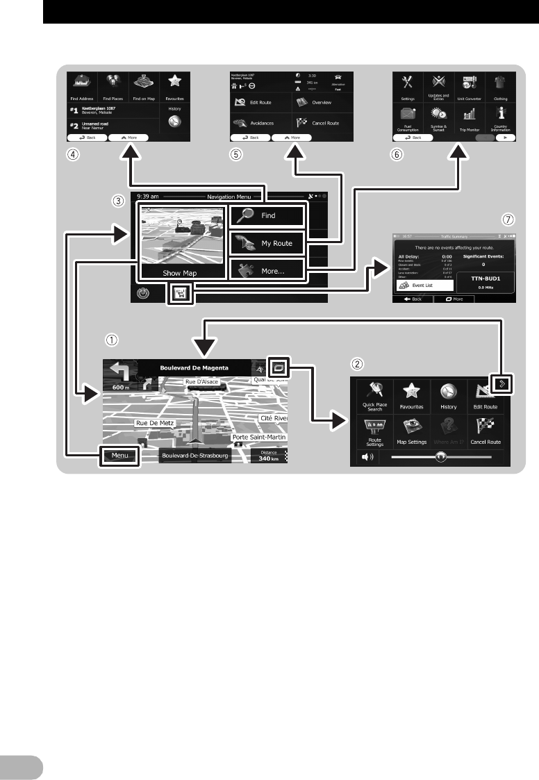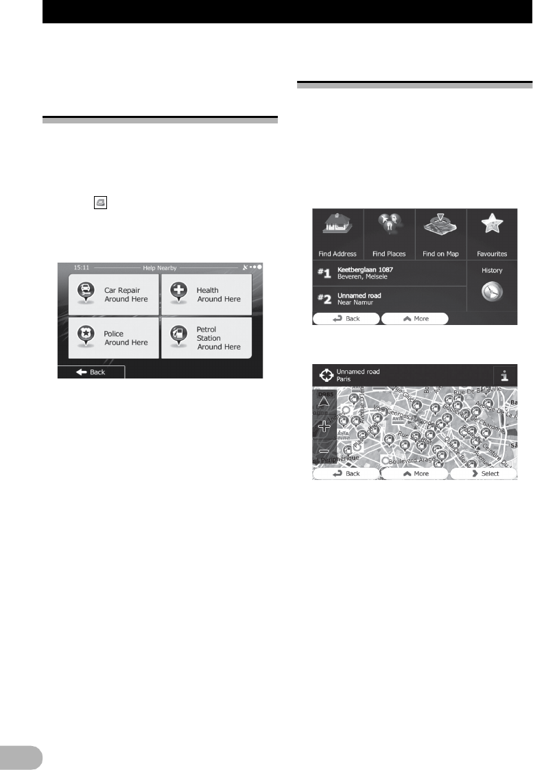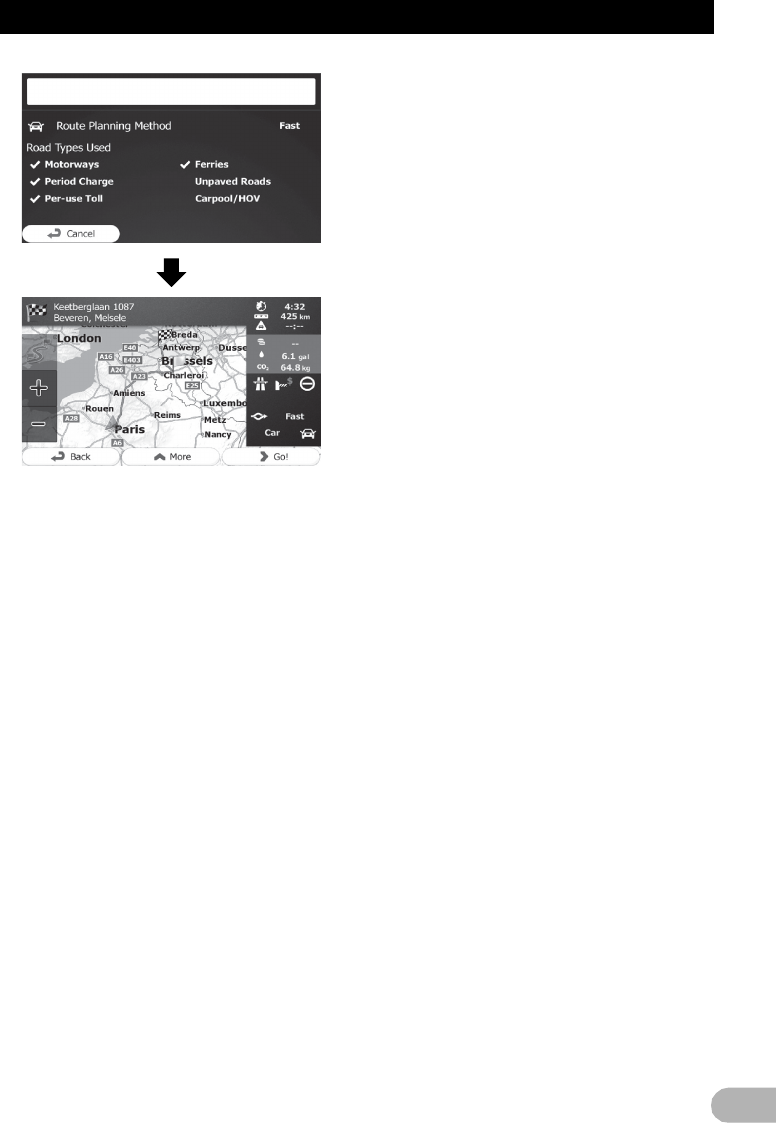 - Operating list screens of the navigation function (e.g. route settings screen)