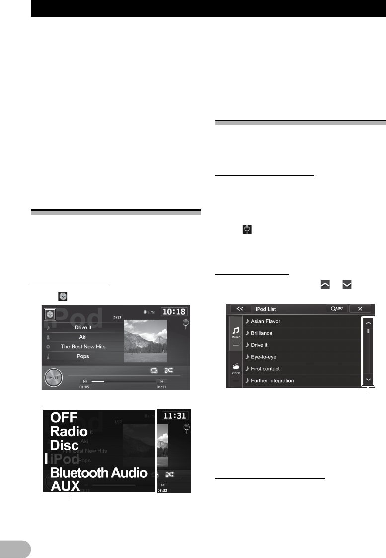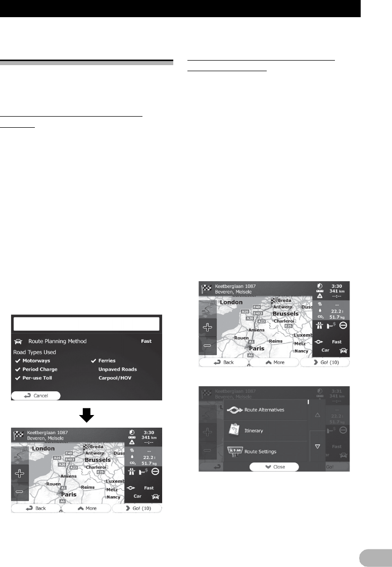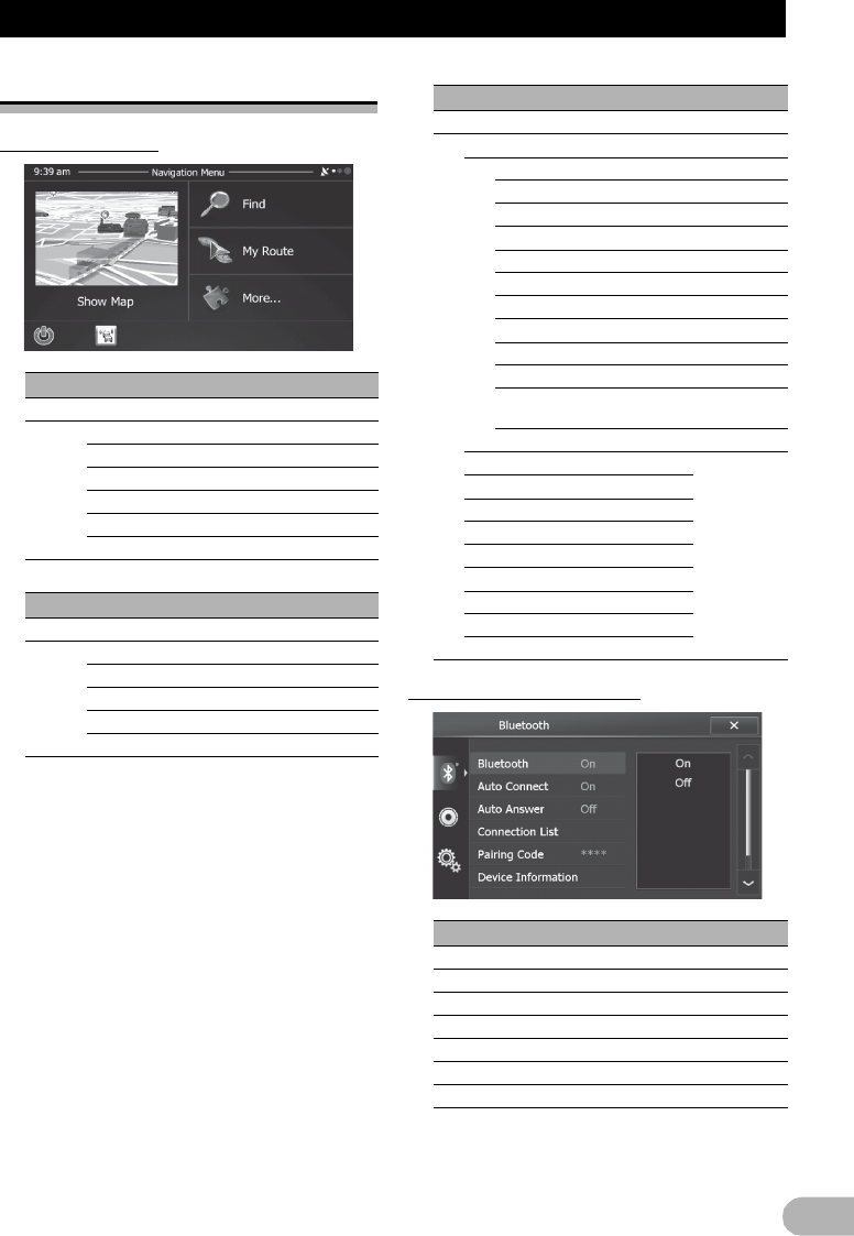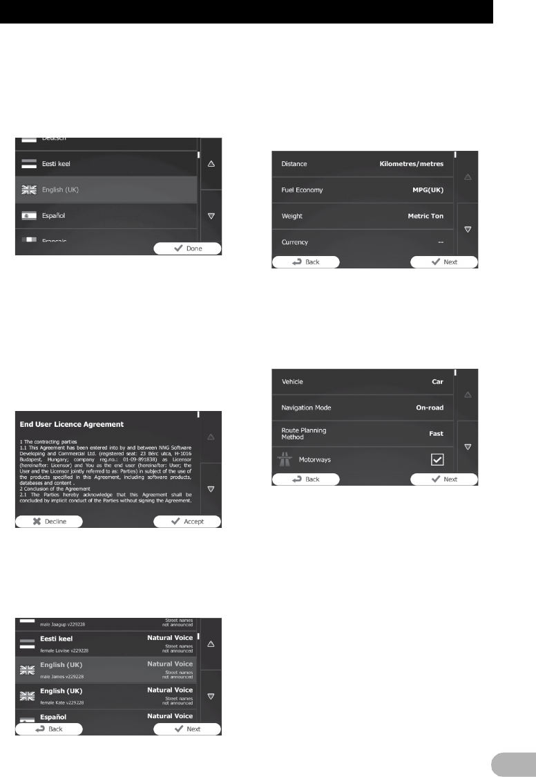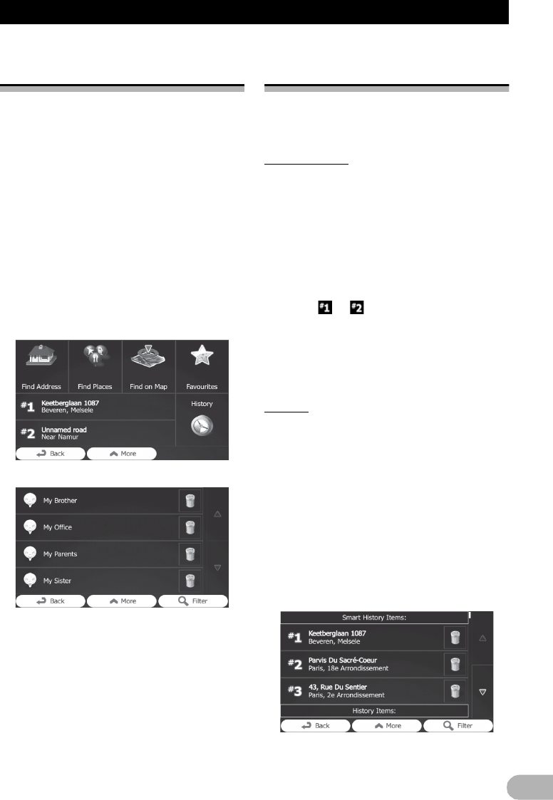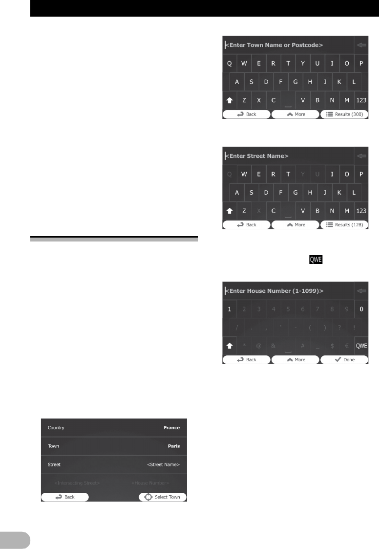 - Operating list screens of the navigation function (e.g. route settings screen)