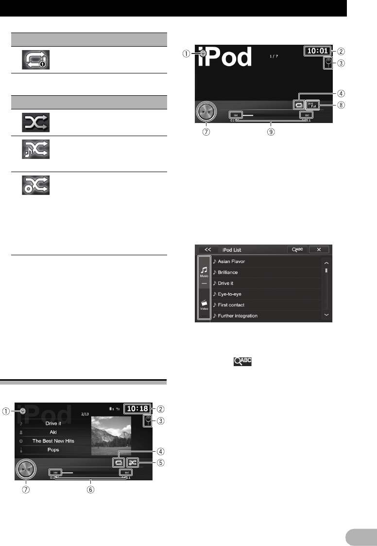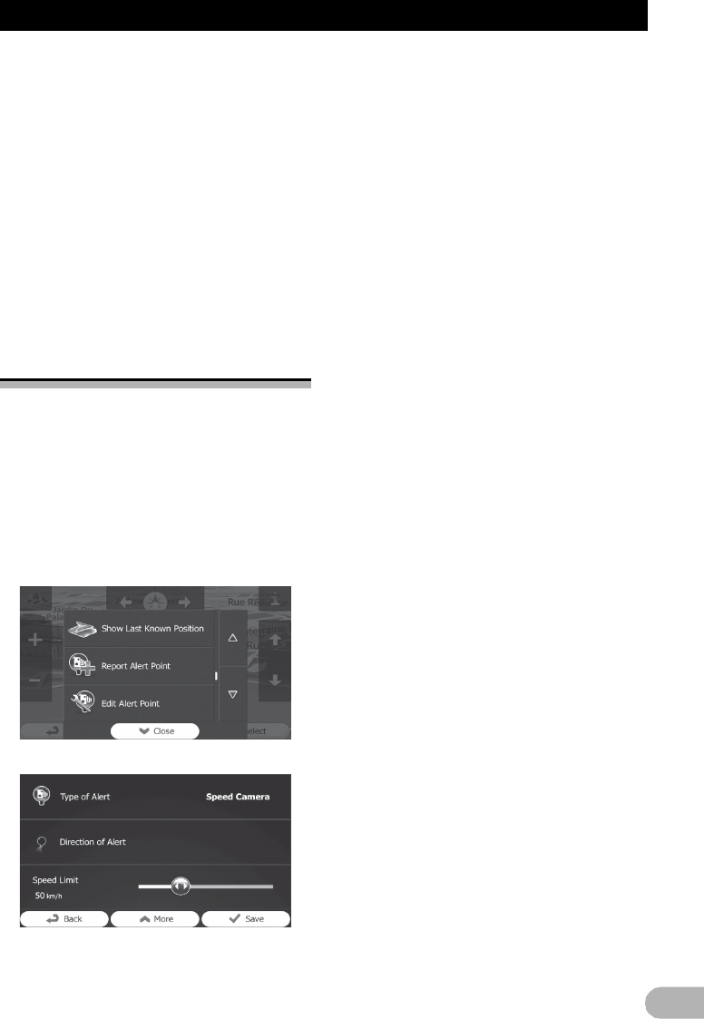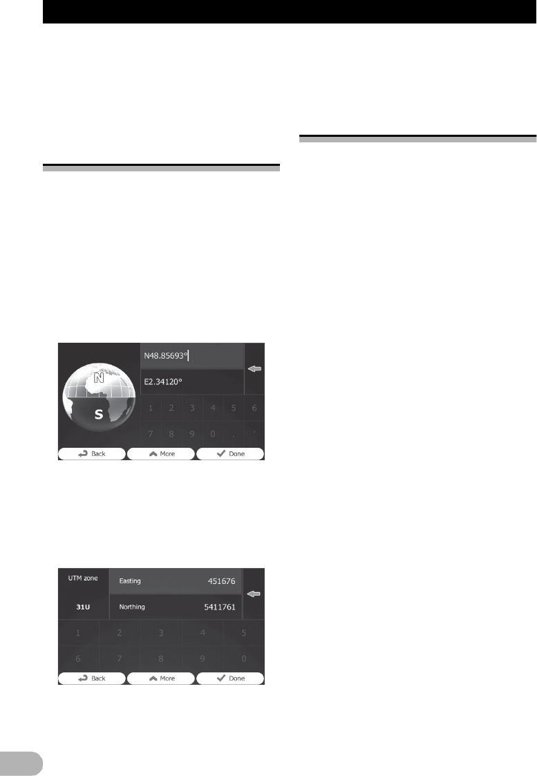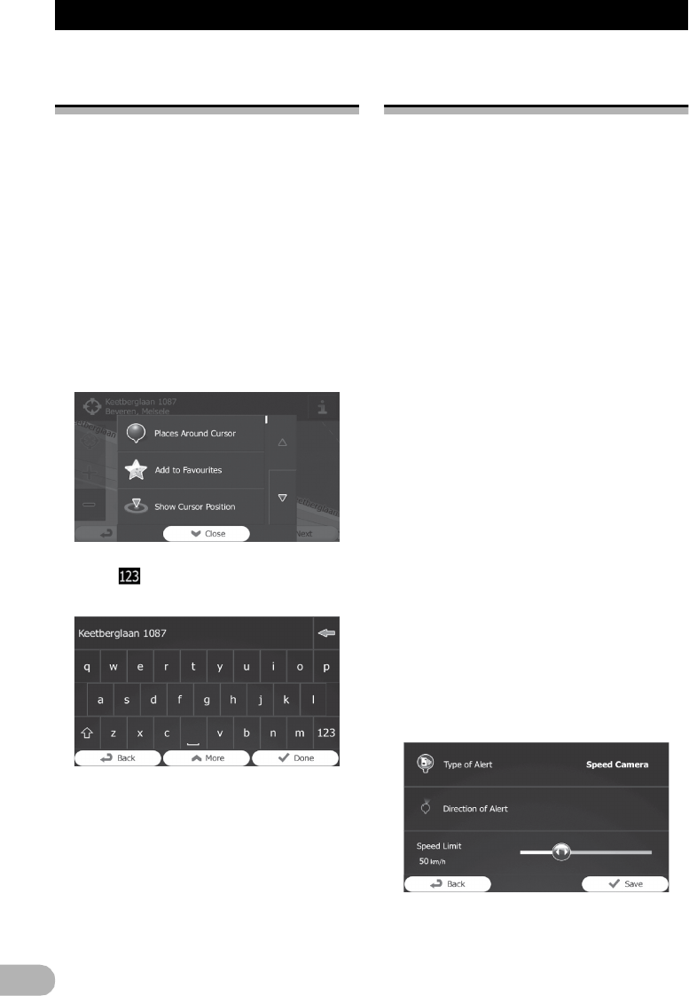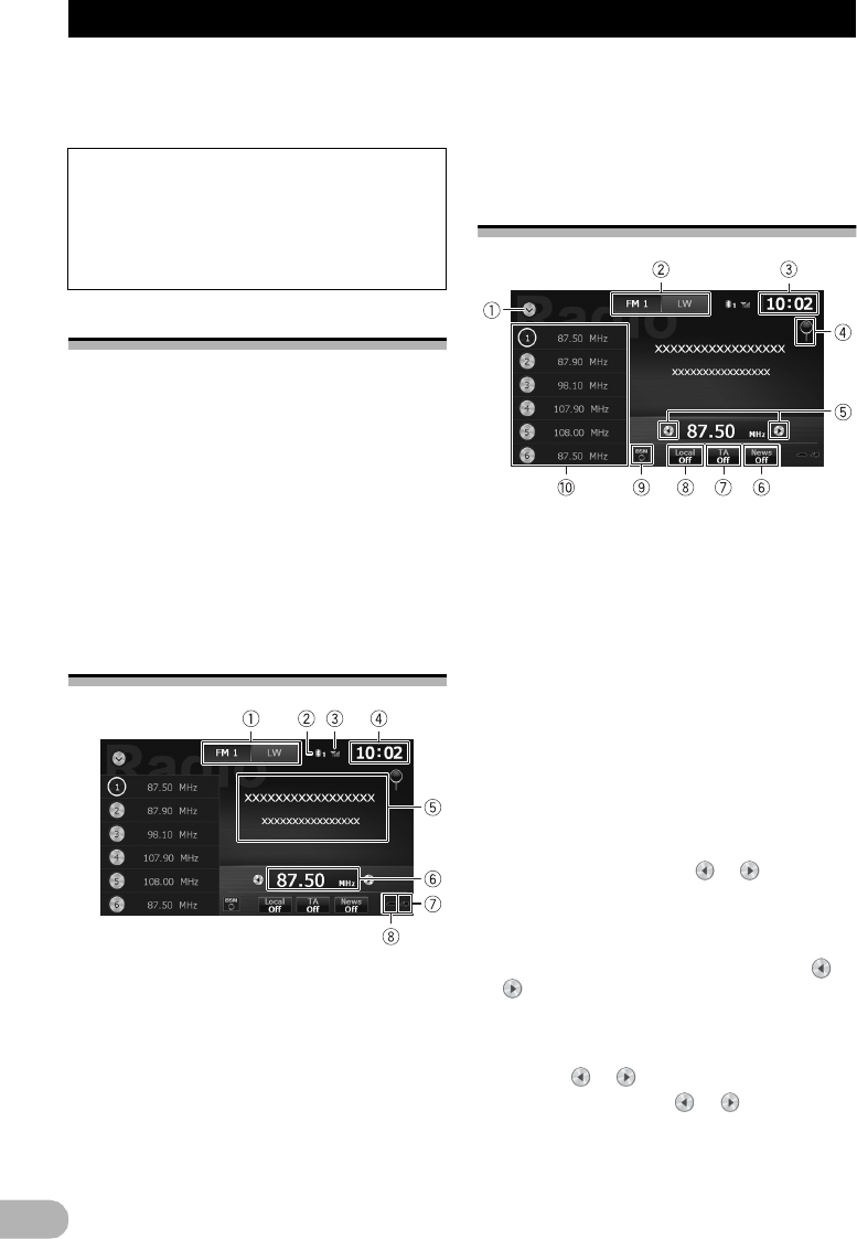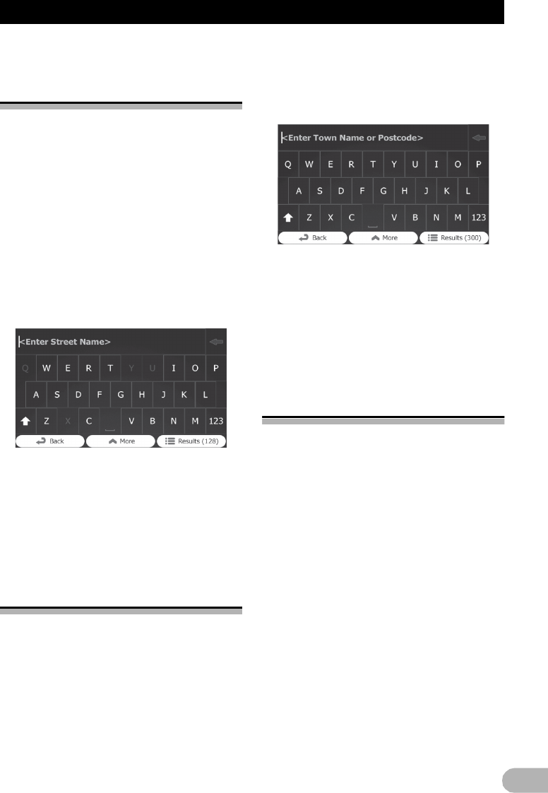 - Operating list screens of the navigation function (e.g. route settings screen)