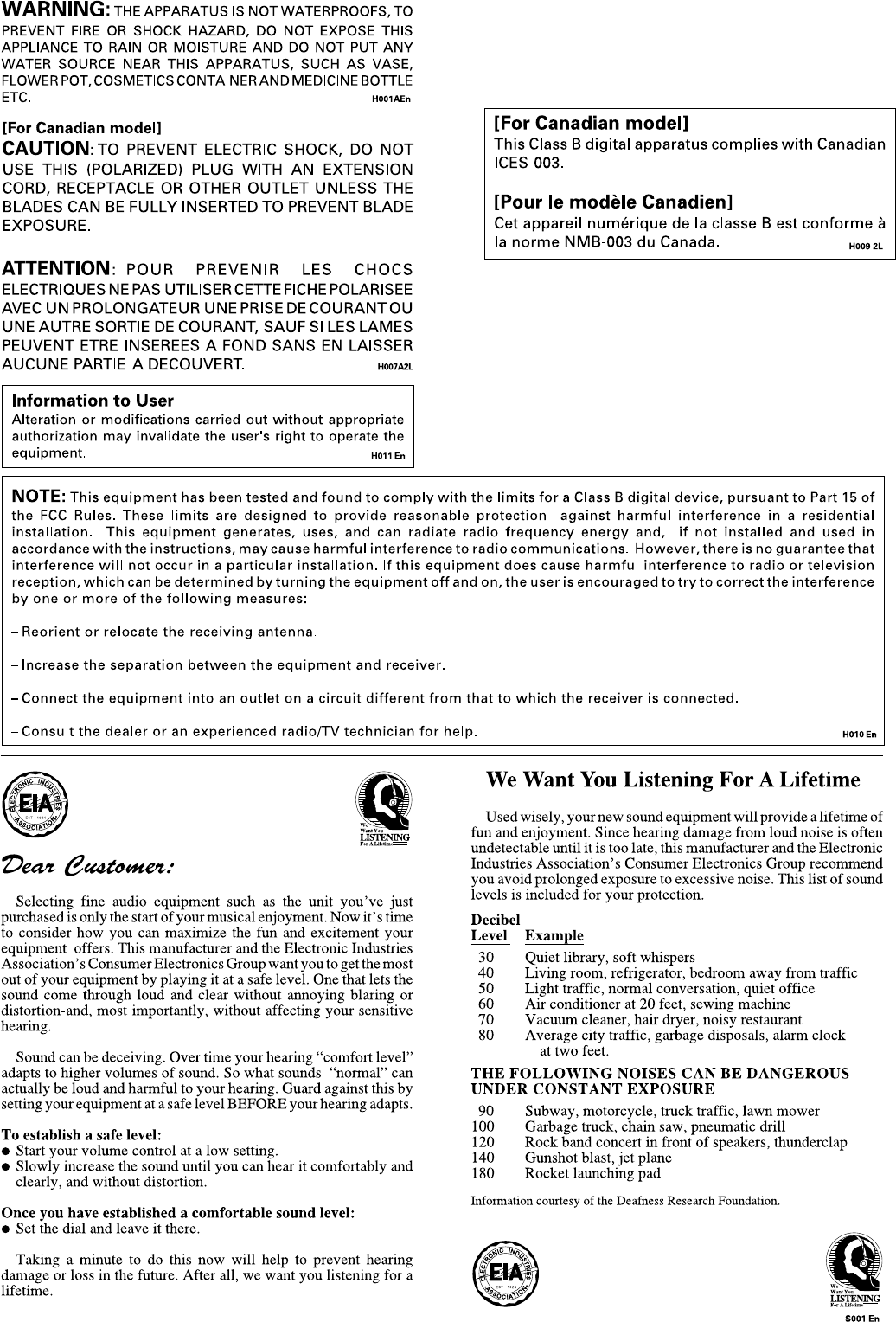 CD, LINE, MIC ........................................... 20 Hz to 20 kHz