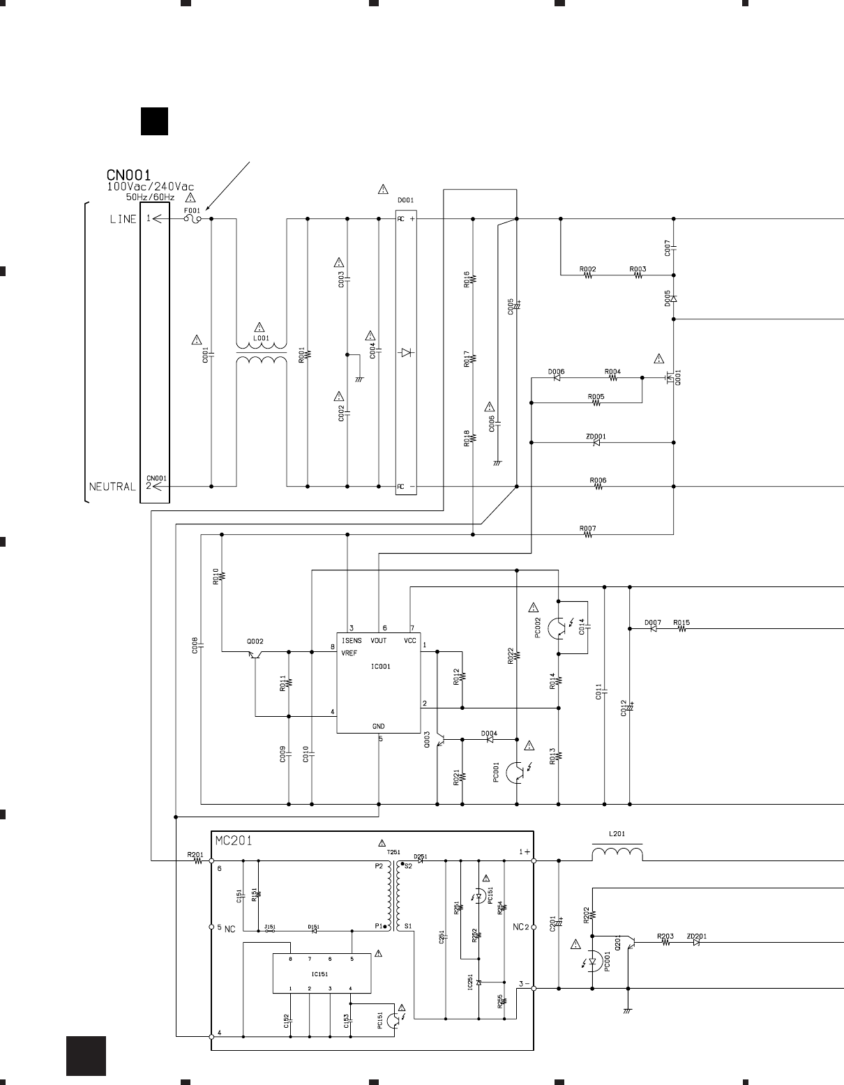 Fuse symbols (fast operating fuse) and/or (slow operating fuse) on PCB indicate that replacement parts must
