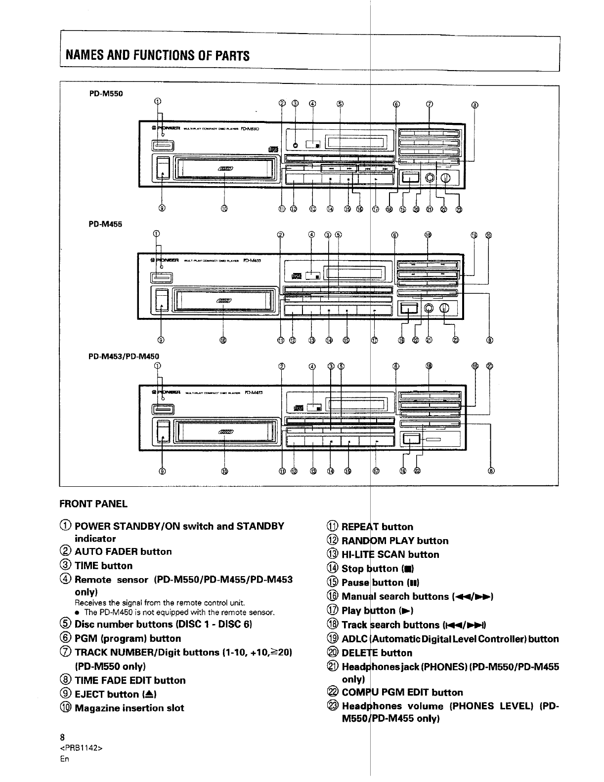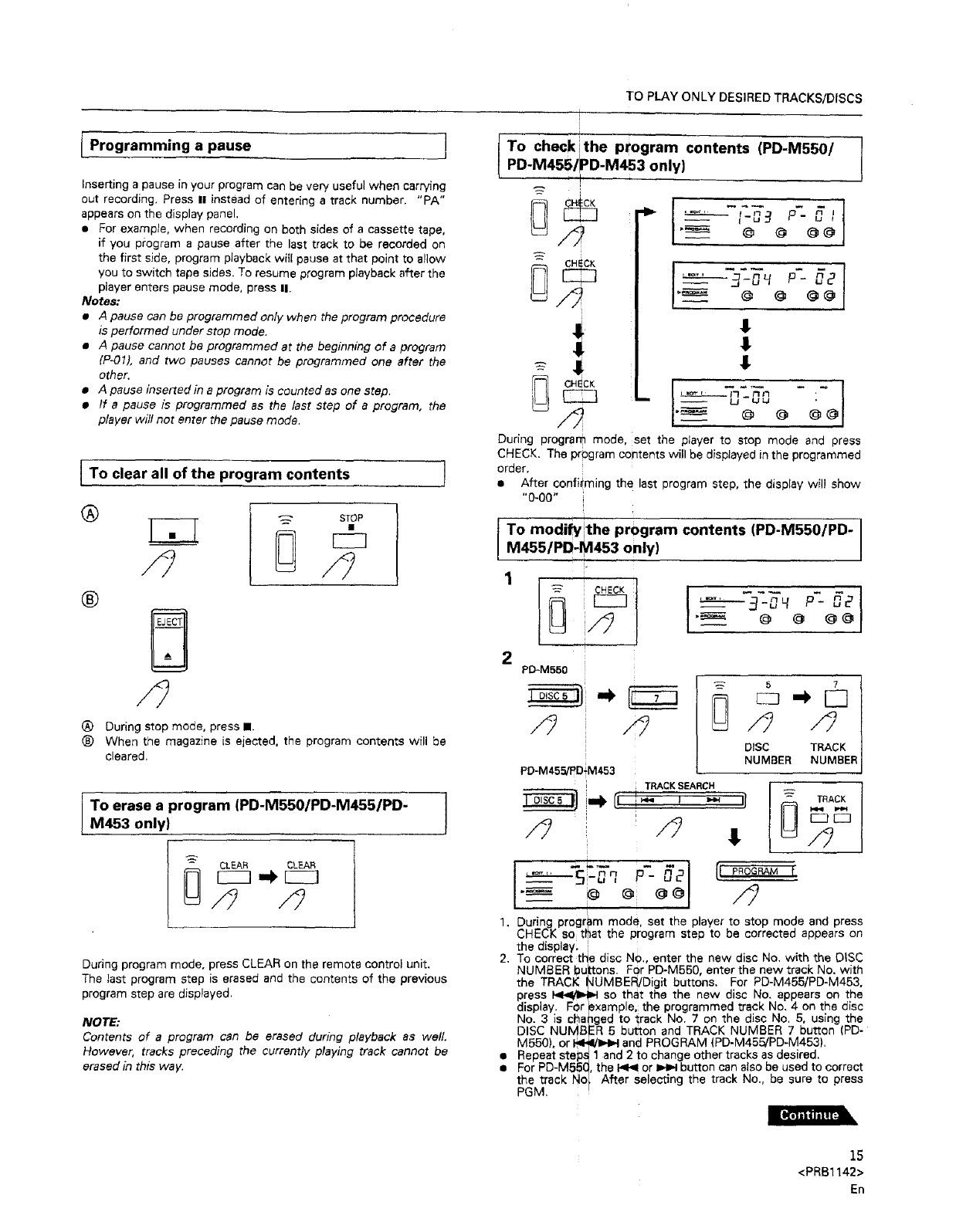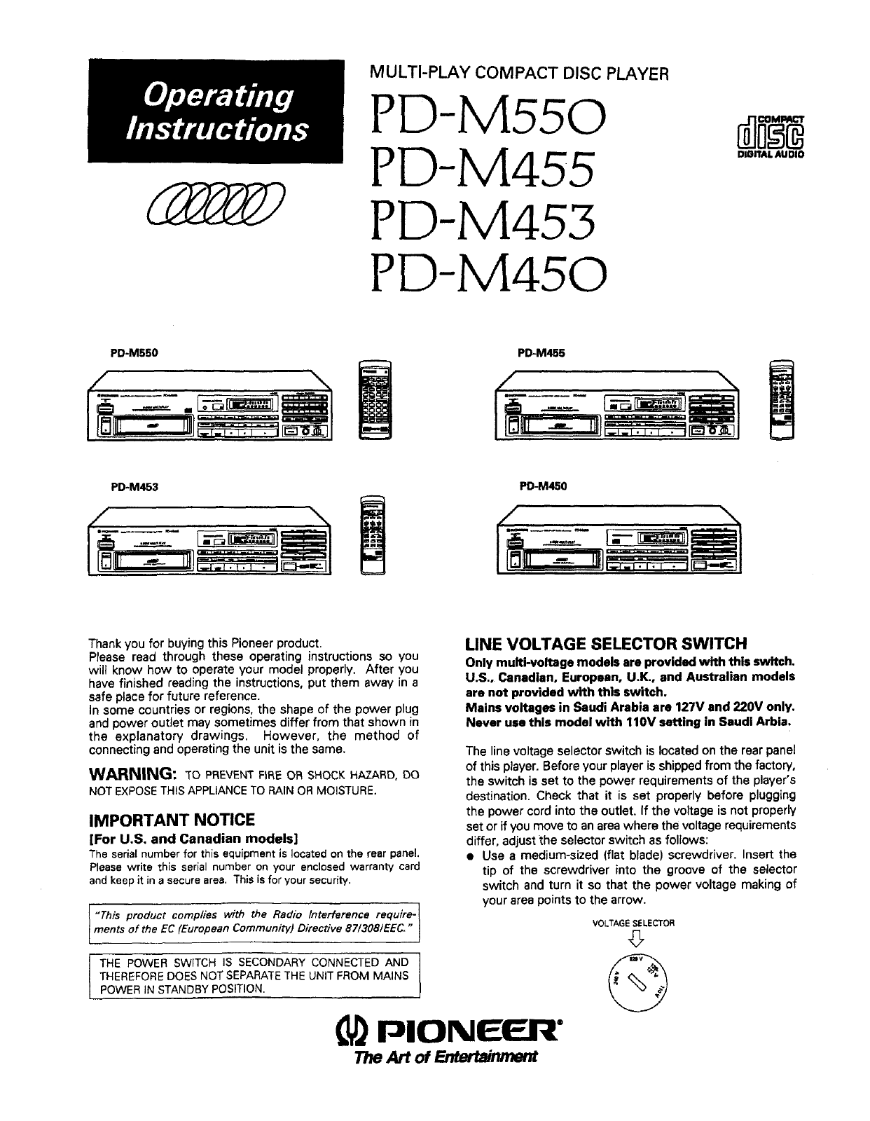 and Canadian models of the PD-M550, PD-M455 end PD-M453: Not