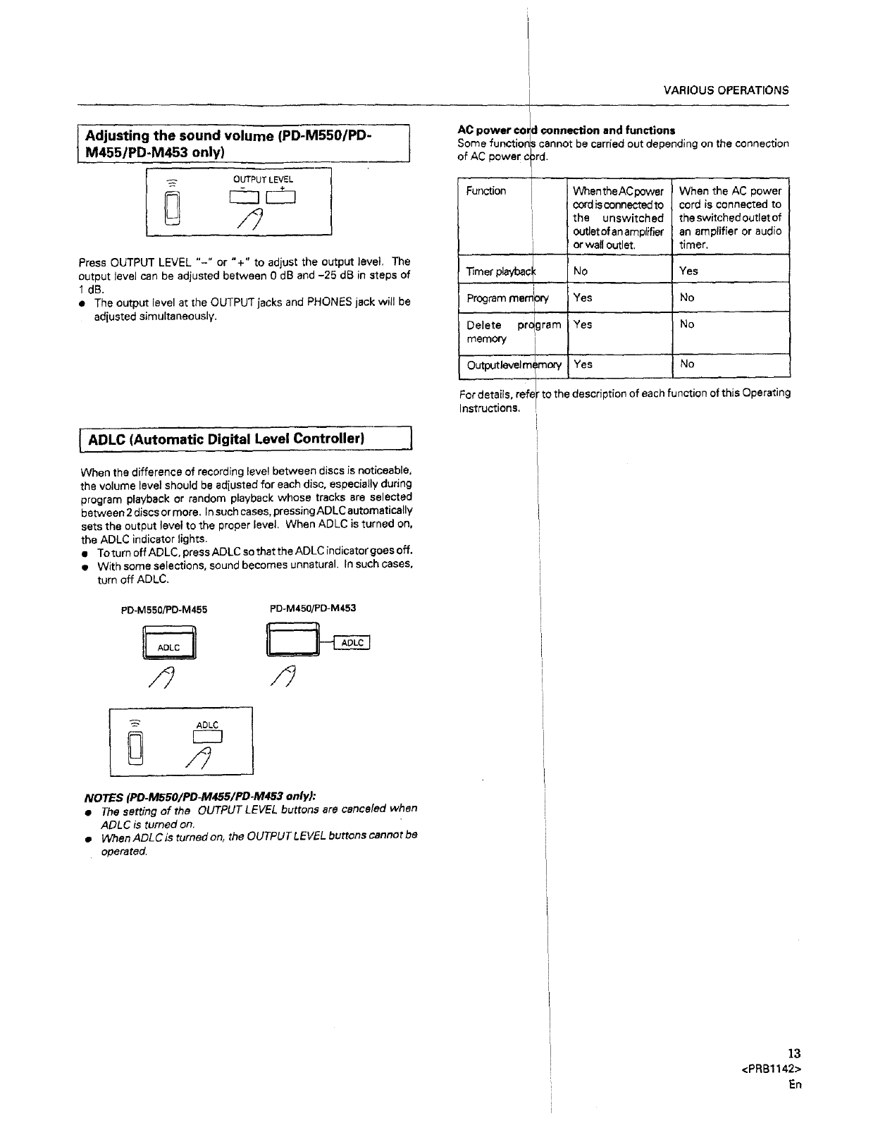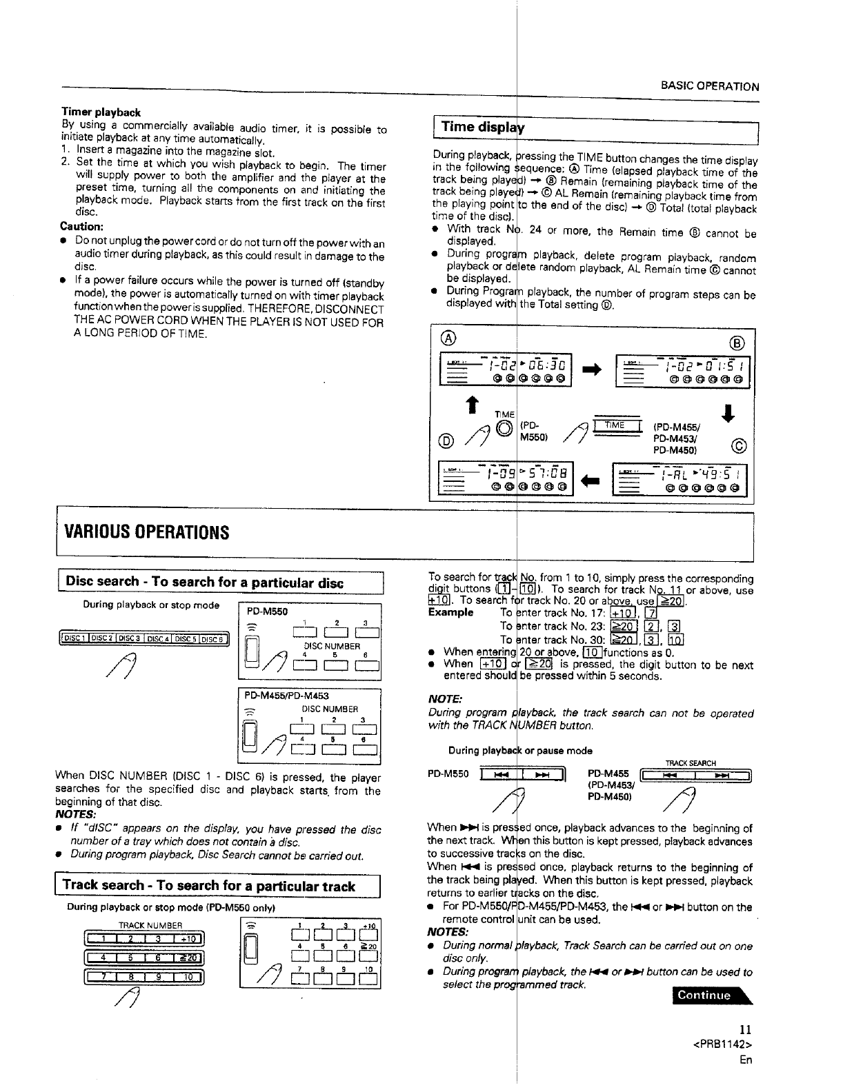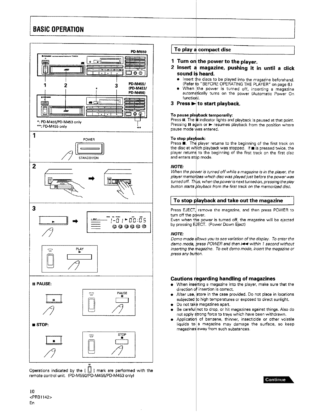 and Canadian models of the PD-M550, PD-M455 end PD-M453: Not