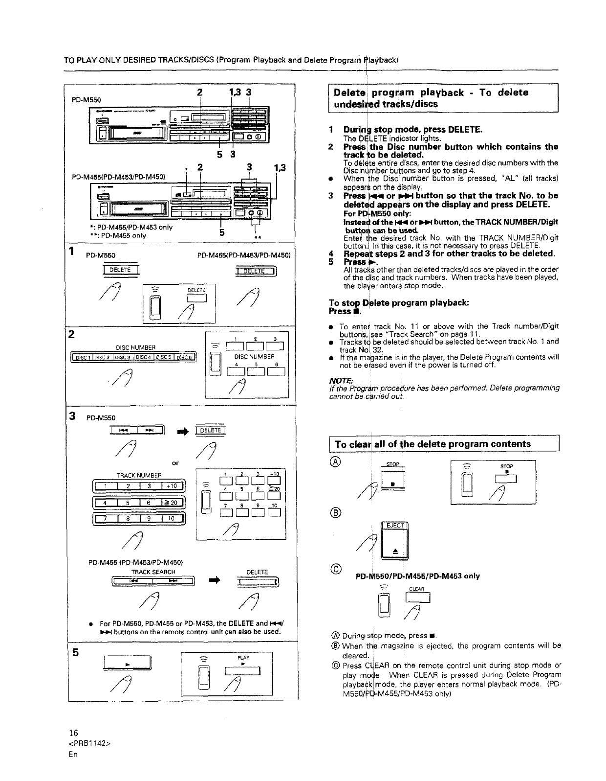 •Program clear (single track or all tracks) (remote control unit