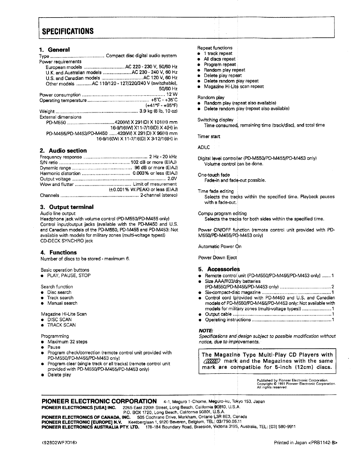Copyright © 1991 Pioneer Electronic Corporation