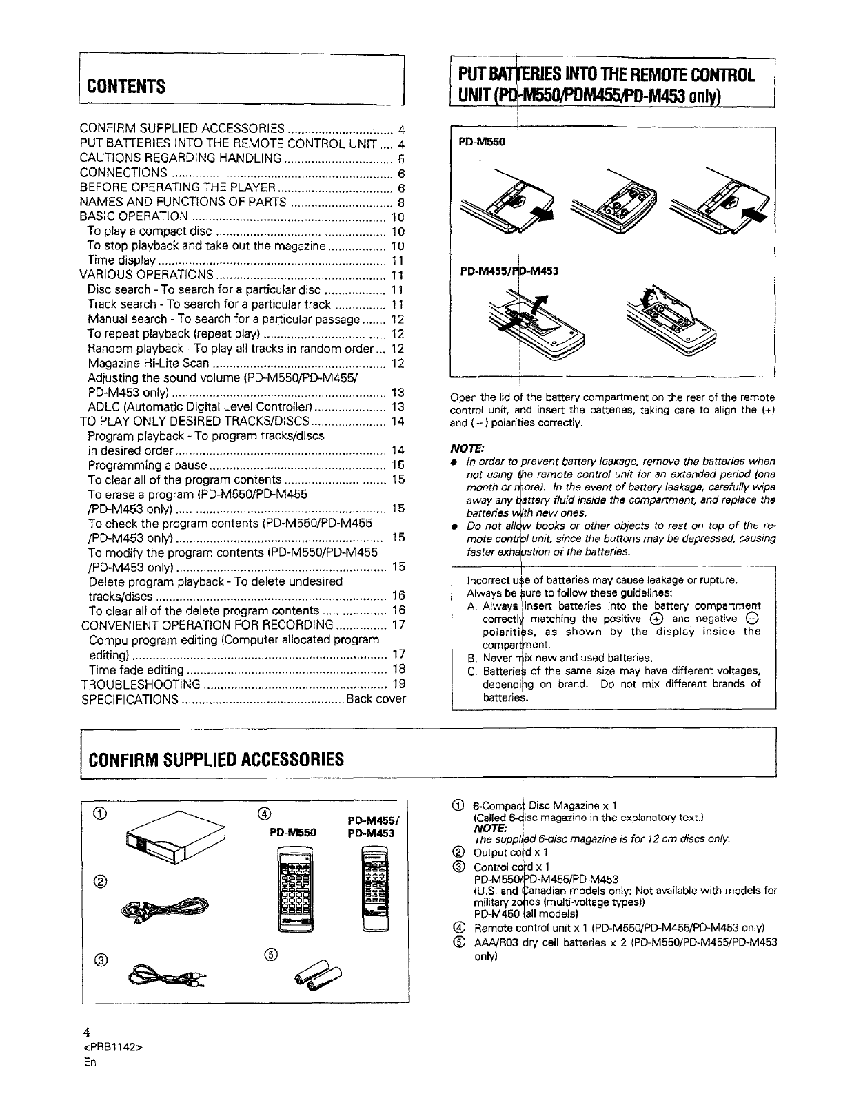 • Remote control unit (PD-M550/PD-M455/PD-M453 onlyl ....... 1