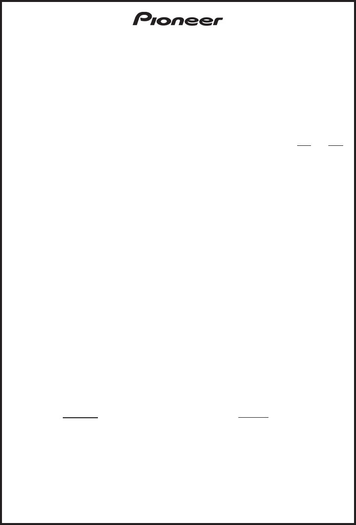 ESTA GARANTÍA LIMITADA SE APLICA AL PROPIETARIO ORIGINAL O A CUALQUIER PROPIETARIO SUBSIGUIENTE DE ESTE PRODUCTO PIONEER