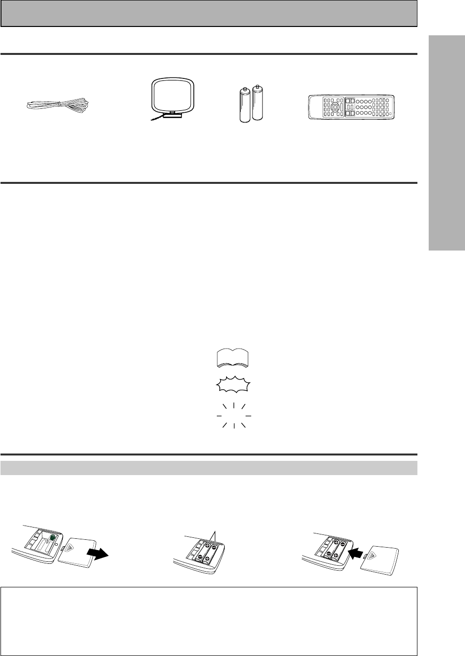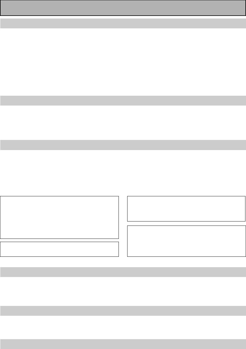 • Never use thinners, benzine, insecticide sprays or other chemicals on or near this unit, since these will corrode