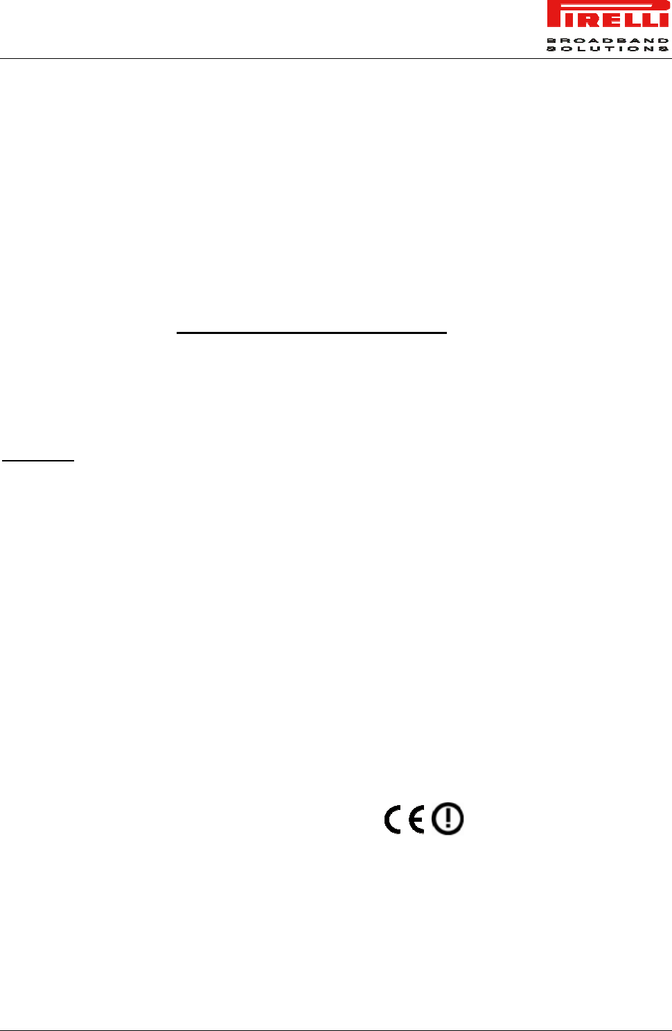 Copyright © 2007 Pirelli Broadband Solutions S.p.A. All rights reserved. This document contains Pirelli proprietary and