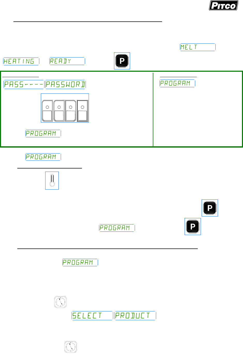 selectable melt cycles, beeper volume, and cook temperature. Each product key may be programmed