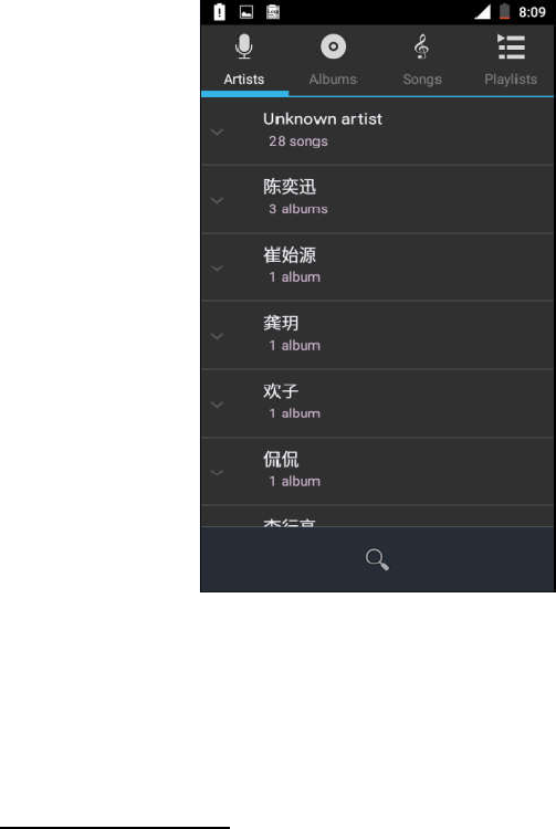 Artists: Music files in SD card, arranged by the performers, such as click "Eason" into songs this singer sang,