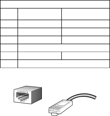 cable. The following table and diagram show the standard RJ-45 receptacle/
