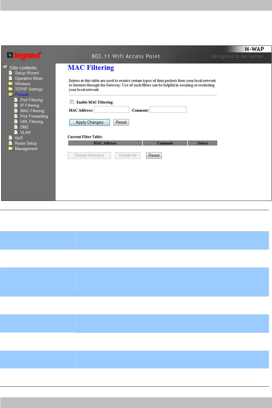MAC Filtering .......................................................................................................................... 30