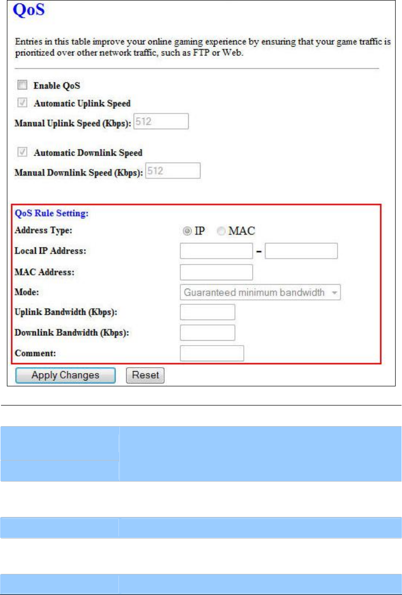 Uplink Bandwidth (Kbps) Enter the Uplink Bandwidth (Kbps) in the column.