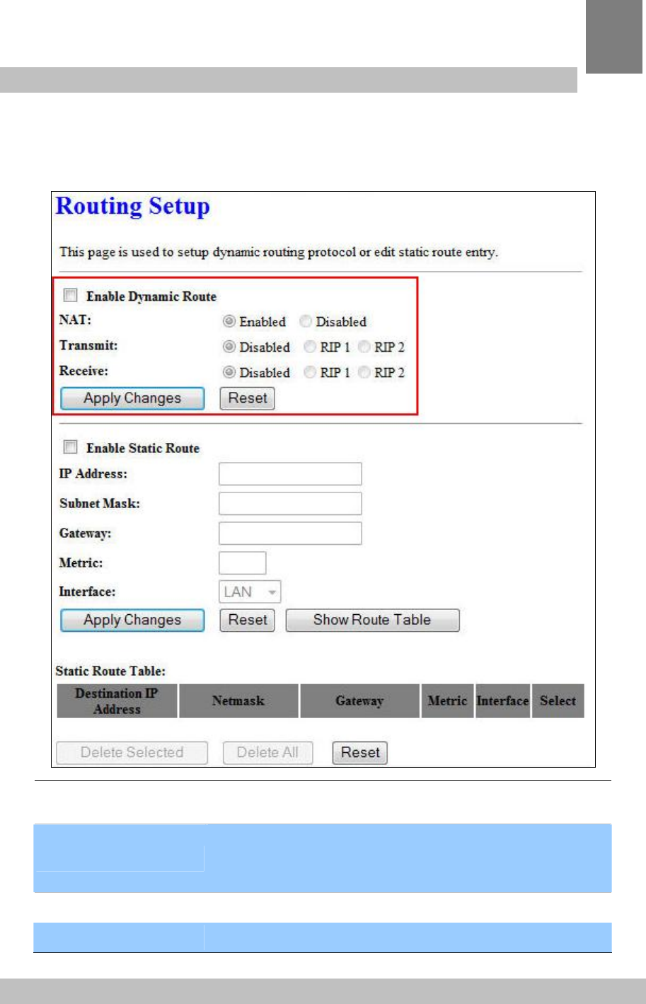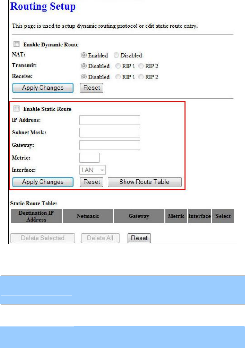Enable Static Route Check the box to enable the Static Route function.