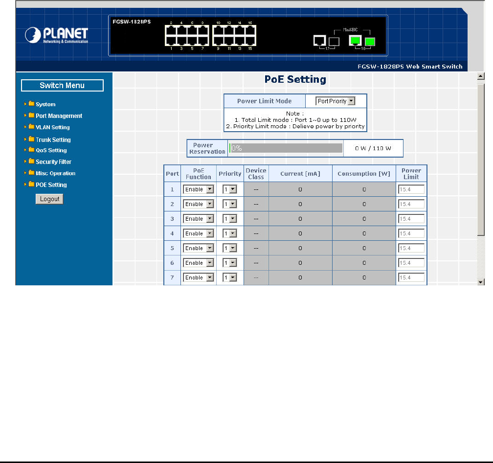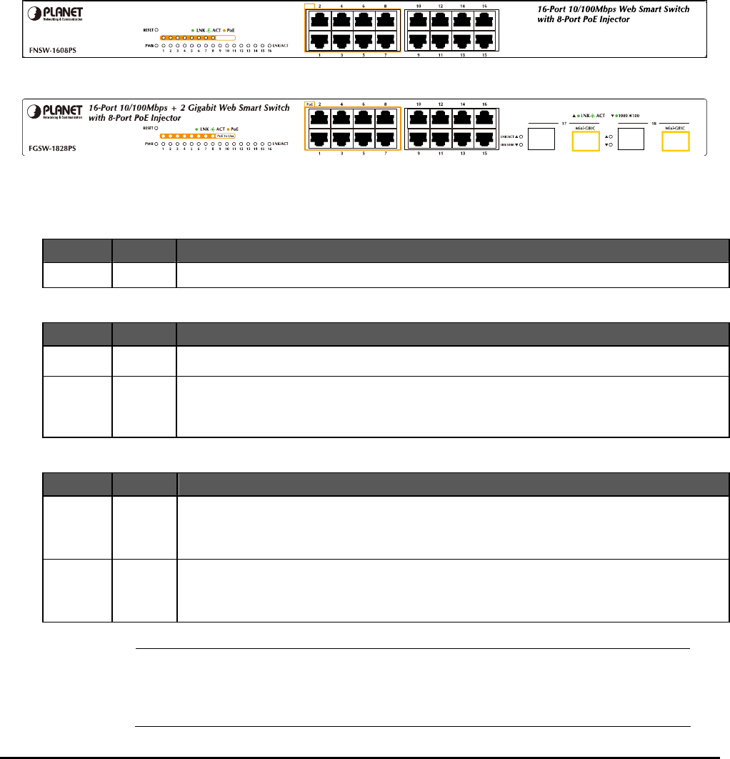 PLANET 16-Port 10/100Mbps Web Smart PoE Switch User's Manual