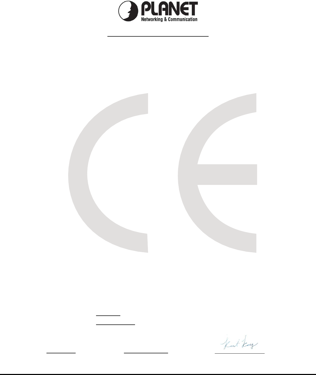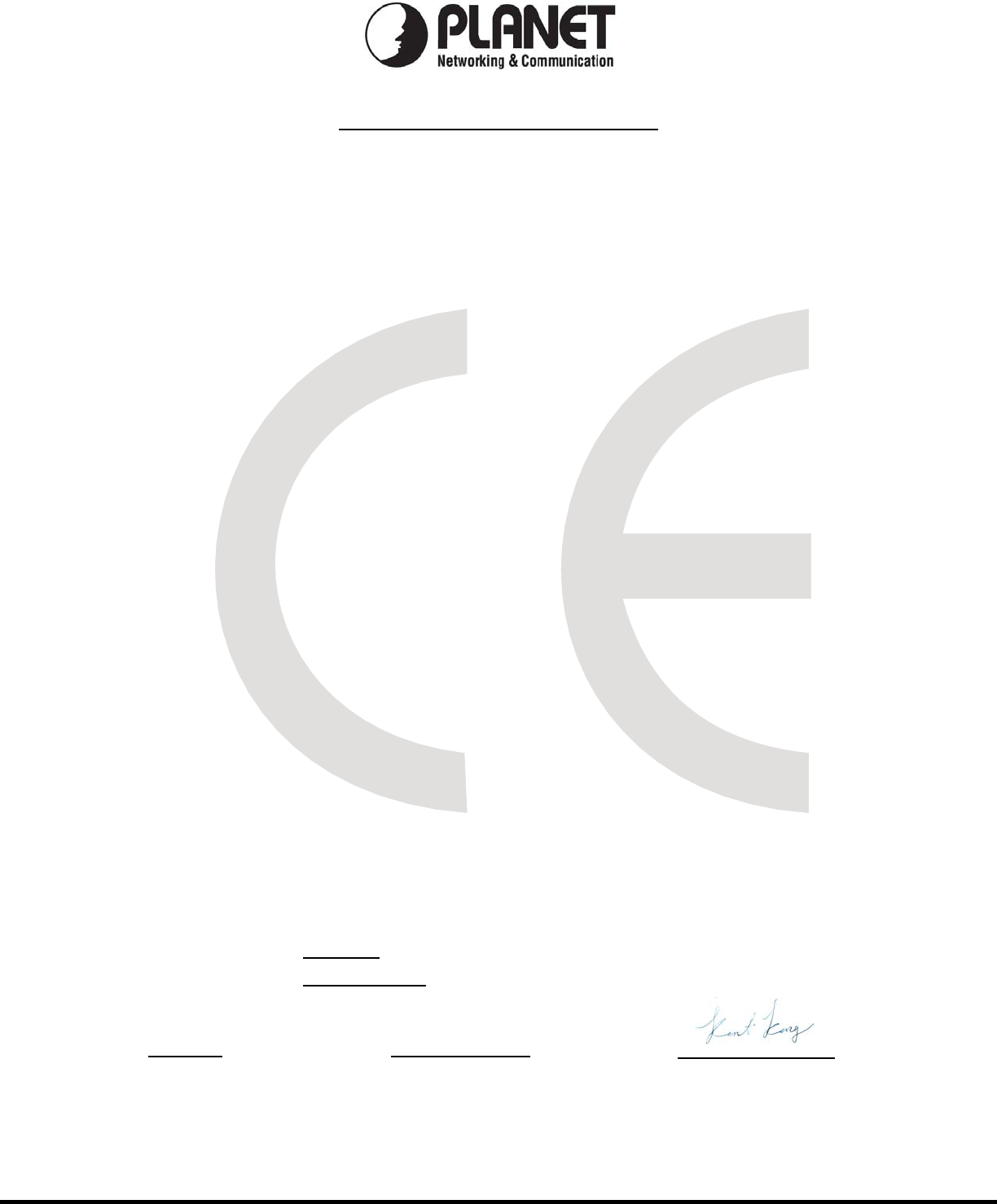 Manual. PLANET makes no commitment to update or keep current the information in this User’s Manual, and