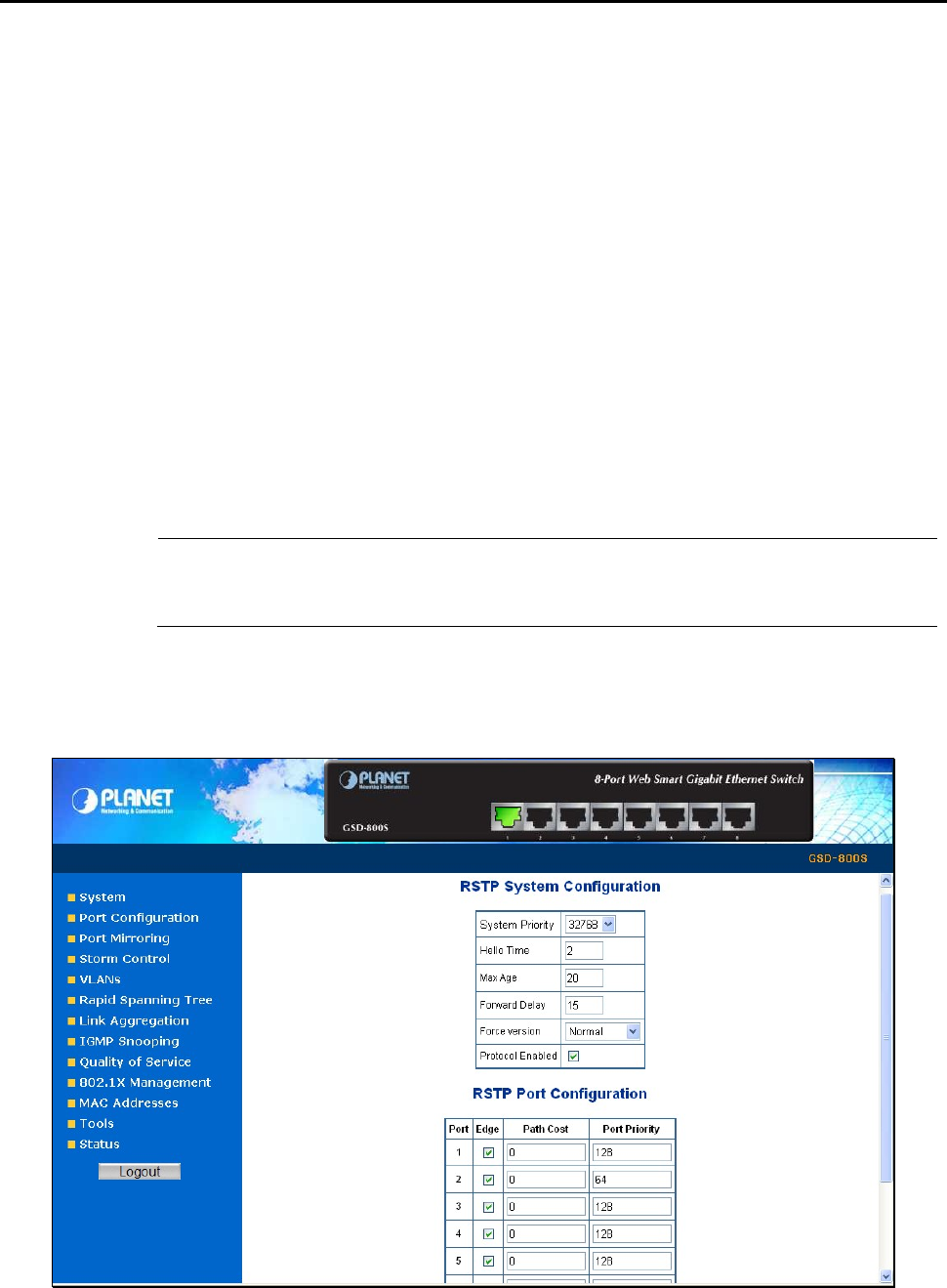 4.6.1 RSTP System Configuration ............................................................................................................................. 37