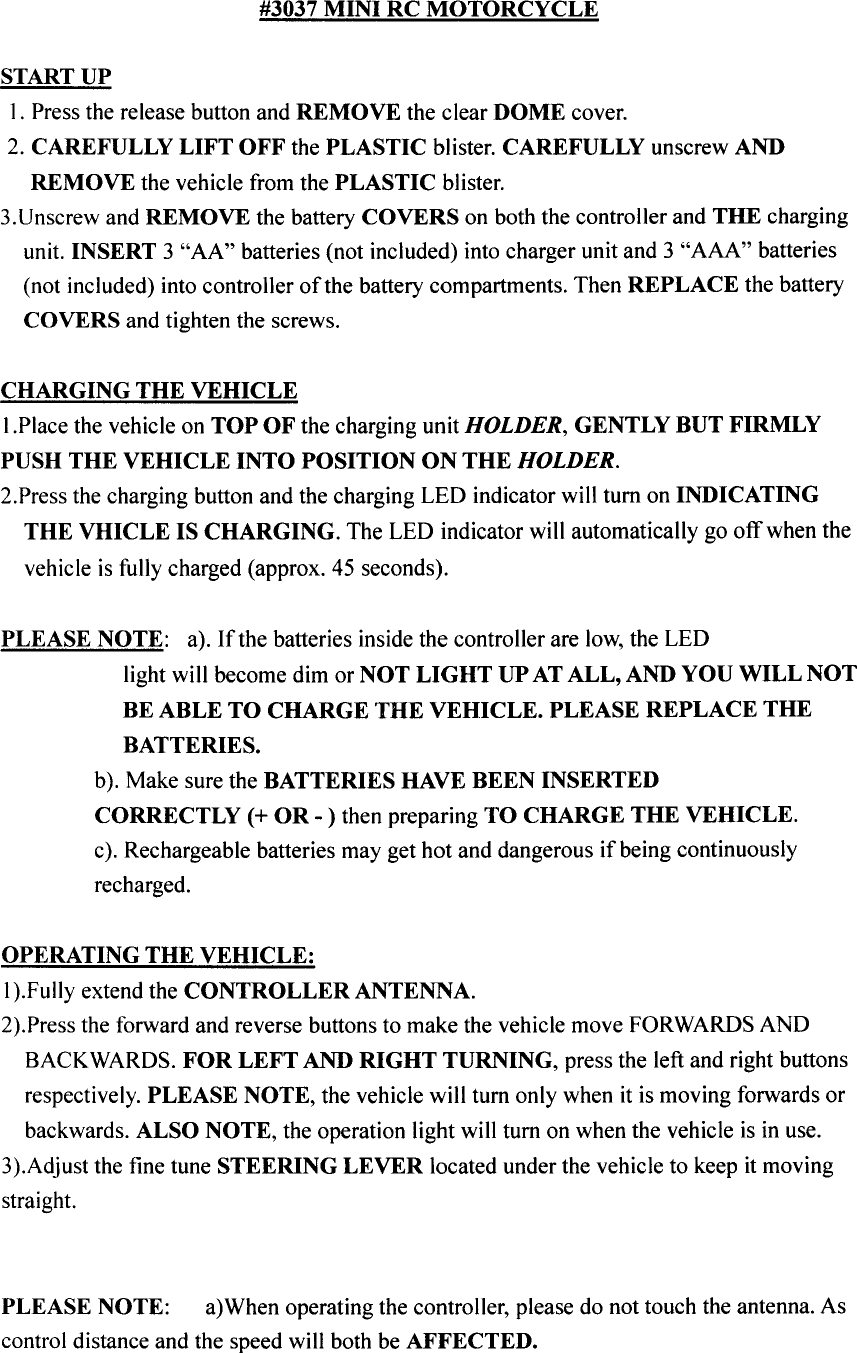 Planet Toys Worldwide 3037R49 RC Motor Cycle User Manual