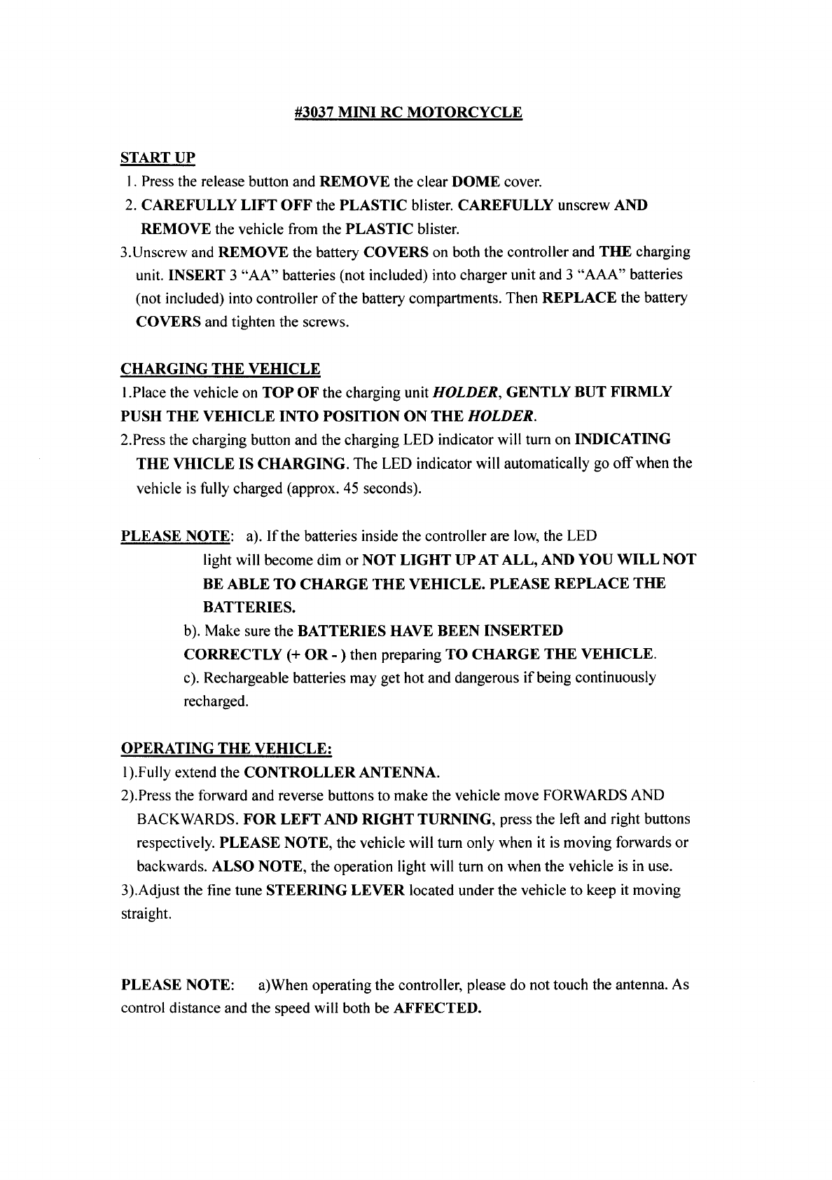 Planet Toys Worldwide 3037R49 RC Motor Cycle User Manual