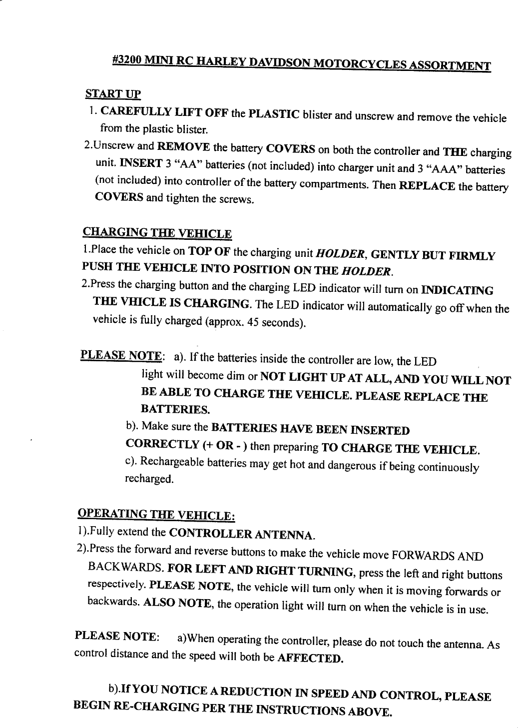 Planet Toys Worldwide 3200T49 RC Motorcycle User Manual