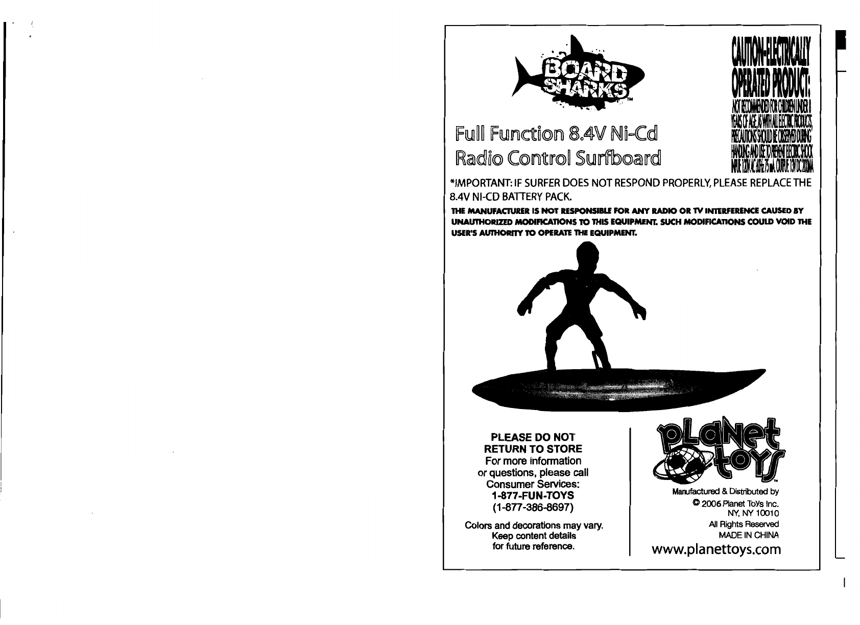 Planet Toys (HK) Ltd. TOY REMOTE CONTROL TRANSMITTER USERS MANUAL
