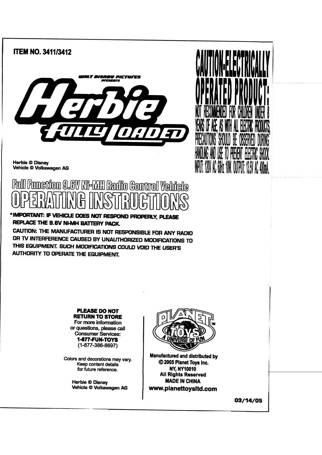 Planet Toys 3411T27 Toy Remote Control User Manual Manual