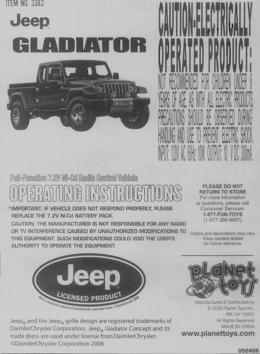 Planet Toys (HK) Ltd. 27MHz WIRELESS RC TOY-TX USERS MANUAL