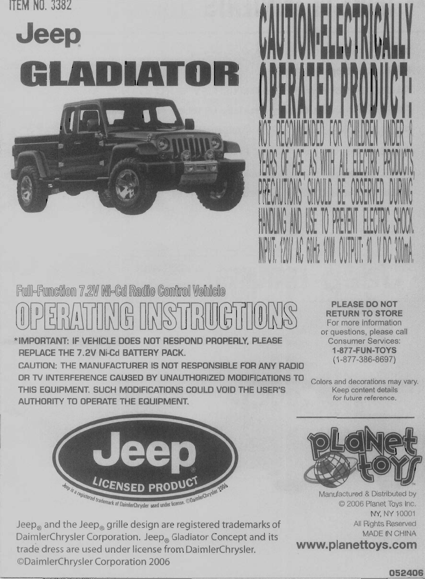 Planet Toys 3411T27 27MHz WIRELESS RC TOY-TX User Manual USERS MANUAL