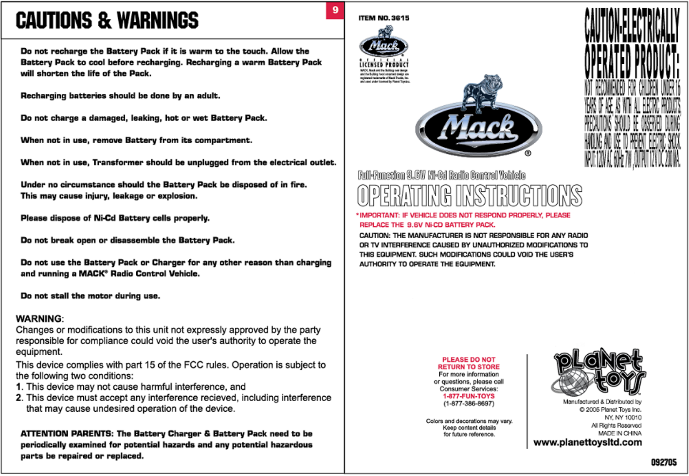 Planet Toys 3615T49 1:12 Scale RC (Transmitter, Toy Remote Control) User Manual 3615 T49