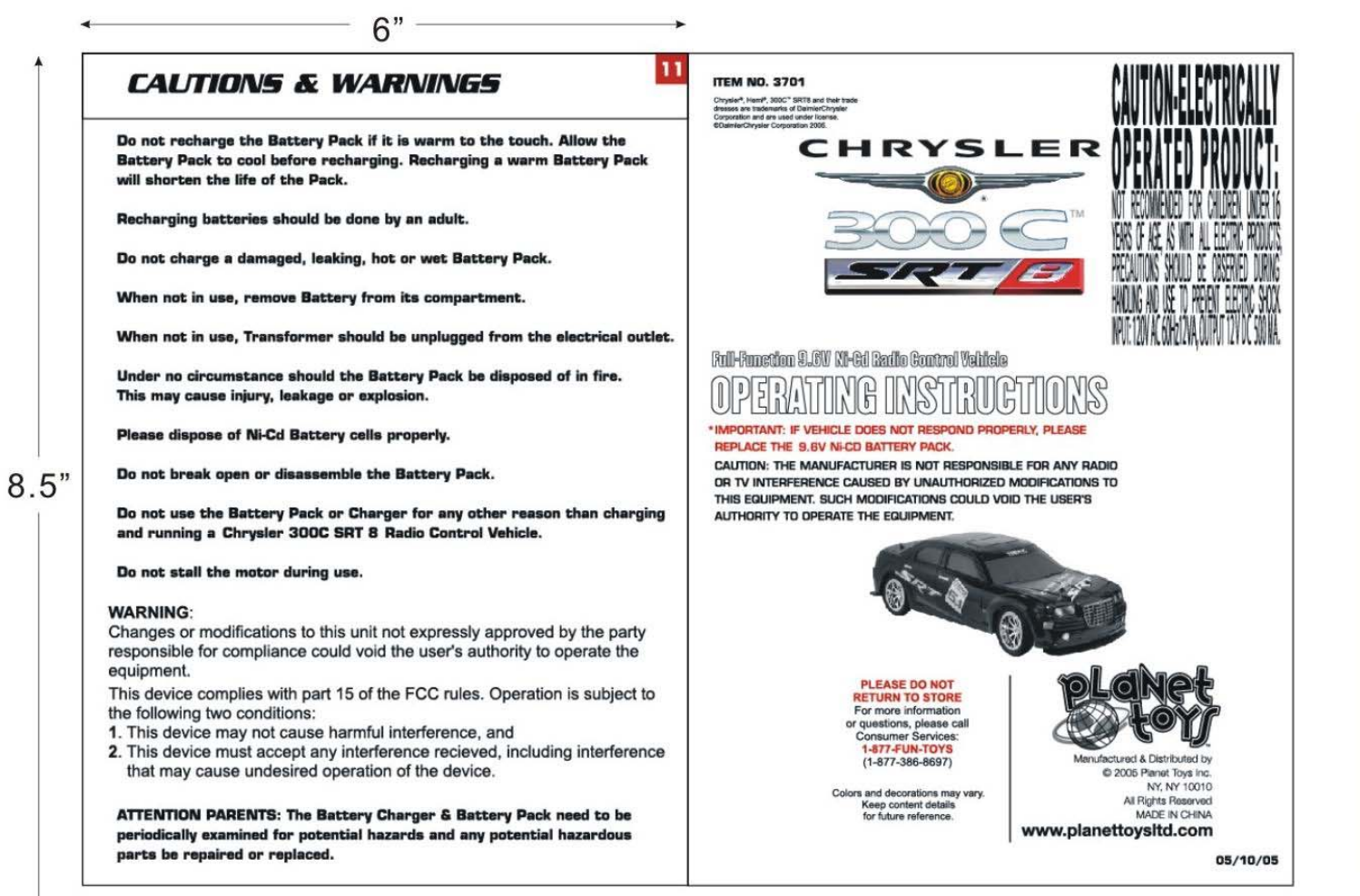 Planet Toys 3701T49 1:5 Scale RC User Manual 3701