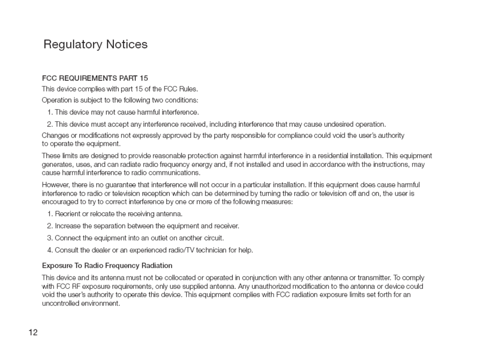 Regulatory Notices ......................................................................... 12