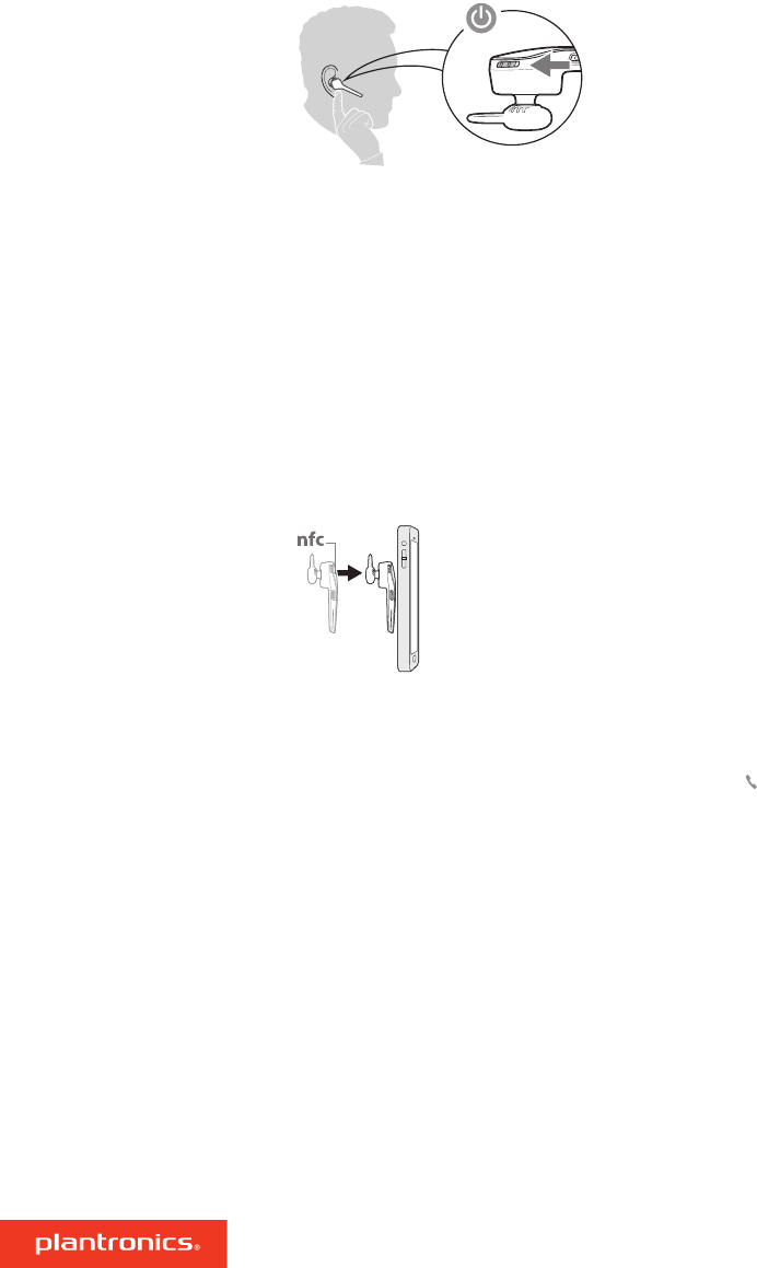 1Wearing your headset, power it on. You hear "pairing" in the default language. The headset LED